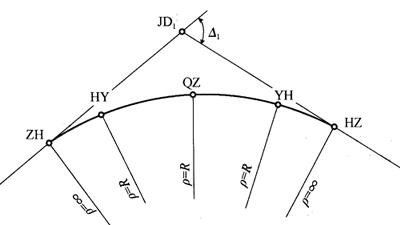 释义 | 缓和曲线的测设 为了行车更安全、舒适,在一些设计行车速度较快、圆曲线半径较小的曲线段,常要求在曲线和直线之间设置一段半径由无穷大逐渐变化到圆曲线半径的曲线,这种曲线称之为缓和曲线。国内、外目前基本采用回旋曲线的一部分作为缓和曲线。如图11-8所示,带有缓和曲线的圆曲线共由三部分组成,即第一缓和曲线段ZH~HY、圆曲线段(即主曲线段)HY~YH、第二缓和曲线段YH~HZ。依此可知,整个曲线共有五个主要点,即: 直缓点(ZH):由直线进入第一缓和曲线的点,即整个曲线的起点。 缓圆点(HY):第一缓和曲线的终点,从这点开始进入圆曲线。 曲中点(QZ):整个曲线的中间点。 圆缓点(YH):圆曲线的终点,进入第二缓和曲线的起点。 缓直点(HZ):第二缓和曲线的终点,进入直线段的起点,它也是整个曲线的终点。 图11-8 缓和曲线主点 |