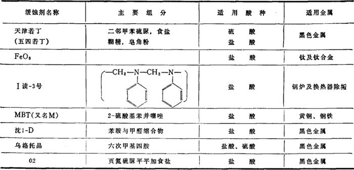表3-6-23 部分国产酸洗缓蚀剂适用的酸种和金属