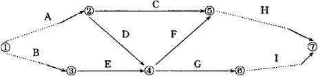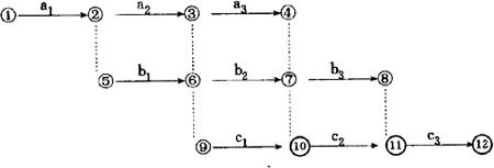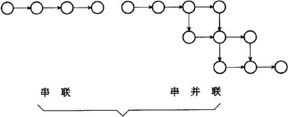 释义 | 网络图的绘制和计算 1.网络图的绘制方法 网络图是网络计划技术的基础。网络图的绘制方法,一般分为三个步骤:任务分解、作图和编号。 (1)任务分解 任务分解就是把一个工程或一项任务分解成若干道工序或作业,并确定各工序之间的关系。任务分解,最重要之点在于合理确定任务活动的开展顺序,以建立网络的逻辑基础。为了正确确定工程活动的开展顺序,搞好任务分解,必须了解工程活动的下列基本性质和特点。 ①时间上的序进性和非序进性。,序进性是指活动的展开严格遵循工艺要求的顺序,在时间上先后进行,如先基础工程后主体结构,先零部件加工后总机装配等等。非序进性是指活动不受施工工艺要求的顺序展开,在时间顺序上无严格限定制约关系,如室内与室外工程间的安排等。序进性活动,组成了序进性工序,它属于串联或串联并联混合活动;非序进性活动则组成平行工序,属于并联活动,如图4.4.3-1所示。 a.序进性工序 b.非序进性工序 图4.4.3-1 ②)空间上的协调性。工程活动不仅要求在时间上协调,而且还要求在空间上协调。空间上协调包括平面上协调和立体上协调。平面作业有点型、线型、网型及其相互交叉;立体作业有地下、地面和架空三类;还有平面与立体交叉作业等等。 工程活动展开顺序,除了考虑上述要求外,还应注意季节性特点,零部件协作及配套工程保证条件等,以满足建设需要,提高经济效益,达到技术上可行,经济上合理。 工程任务展开以后,应按各工序的顺序编制作业明细表。 (2)作图 作图是按照作业明细表标明的各项作业的先后顺序,在相邻工序的结合处画上事件符号“〇”,然后用箭线连接起来,便可绘出网络图。网络图的作图方法如下。 ①双代号法。双代号法是用一个箭线表示一个工序,工序名称写在箭线上部,工序作业时间写在箭线下部。箭尾表示工序的开始,箭头表示工序的结束,前后两相邻箭线的结合处画上事件符号圆圈“〇”。双代号法为国内外广泛应用的方法。 ②网络图的绘制顺序。网络图是有向图,要从左至右排列,不能有缺口和回路。按工序的先后顺序画图:工序A完工后,工序B、工序C才能开工;A为B、C的紧前工序,B、C为A的紧后工序(其画法如图4.4.3-2所示)。 图4.4.3-2 ③虚工序的画法。虚工序是指作业时间为零的虚任务,它不需要时间、资源和费用,只用来表示相邻工序之间的衔接关系。虚工序用虚线表示。如图4.4.3-3所示。 图4.4.3-3 ④平行作业的画法。在实践中,为了加快工程进度,合理安排施工,有些工序可以同时并行,即采用平行作业方式,平行作业,在网络图中,一般画成并联形式,也可用虚工序表示。其画法如图4.4.3-4所示。 图4.4.3-4 ⑤交叉作业画法,交叉作业是在一项复杂工程中,为缩短生产周期,加快工程进度而实行的平行作业与其他作业互相交叉进行的作业方式。在网络图中,交叉作业的画法如图4.4.3-5所示。 图4.4.3-5 ⑥始点与终点的画法。一张网络图,只能有一个始点和一个终点,用以表示工程的开始和完成。但在实践中,有些工程需从几个工序同时开工,也有的需几个工序同时完工后才能完成。这种情况,在网络图上的画法如图4.4.3-6所示。 图4.4.3-6 (3)编号 编号是指按照作业明细表排列的顺序,对每个结点编上号码。编号一般采用前进法,即从始点起,从左至右编排,每个事件结点都应有一个顺序编号,号码不能重复使用。一个工作的两个相关事件可写成 2.网络图时间参数的计算与确定 网络图时间参数,包括作业时间、事件时间、线路时间、时差及关键线路等。其计算和确定的方法如下。 (1)作业时间的计算 作业时间(也称工序时间),是指完成某一项作业所需要的延续时间,以TE(i,j)表示。作业时间,一般是根据工时定额来确定。在没有工时定额的情况下,作业时间难于确切地确定,只能提出一些估计的数值。此时,根据概率和数理统计原理,常用三点估计法求出平均值,确定作业时间。其计算公式如下: 式中:TE-平均作业时间; a-最小的估计时间,或最乐观时间; b-最大的估计时间,或最悲观时间; m-a、b二者之间的估计时间,或最可能时间。 TE实际上只是一个平均估计值,偏差是不可避免的。为了查明该估计值概率分布的离散程度,可计算完成该作业所需时间的方差值。计算公式如下: 式中σ为均方差。由σ值可知平均估计值TE的代表性。σ值愈大,表明TE离散程度愈大,则其代表性愈小;反之,σ值愈小,则表明TE的离散程度愈小,其代表性愈大。 (2)工序时间参数的计算 ①工序最早开始时间,以TES(i,j)表示。就是箭尾事项的最早开始时间。即: TES(i,j)=TE (i) 工序最早开始时间,也可用其紧前工序的最早开始时间加上本工序时间来计算。如同时有几个紧前工序时,则选取其中最早开始时间与本工序时间之和为最大者。否则,在此之前,箭头事项不可能开始。计算公式如下: TES(j,k)=max{TEs(i,j)+T(i,j)} (j=2、3……n) 式中:TES——工序最早开始时间; j、k——工序箭尾事项与箭头事项编号; T(i,j)——工序作业时间。 ②工序最迟开始时间,以TLS(i,j)表示,是指工序在此时间最迟必须开始,否则会影响后续工序如期开工。其值等于箭头事项的最迟结束时间减去本工序的工序时间之差。计算公式为: TLs(i,j)=TL(j)-T(i,j) 亦可用紧后工序的最迟开始时间减去本工序时间求得。当紧后工序同时有几个时,可选取其中最迟开始时间与本工序时间之
