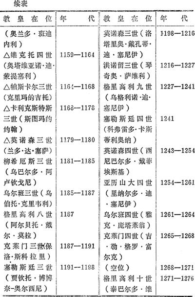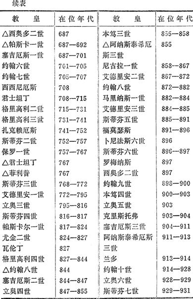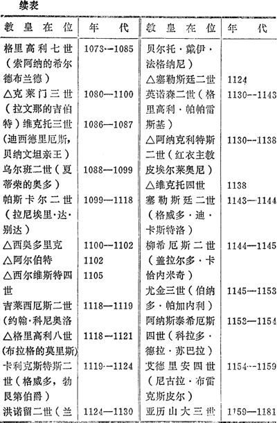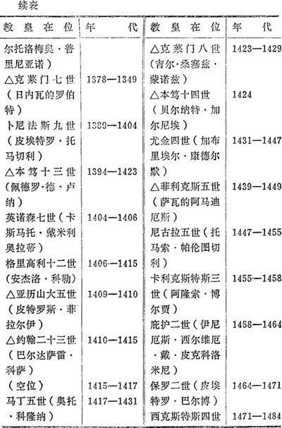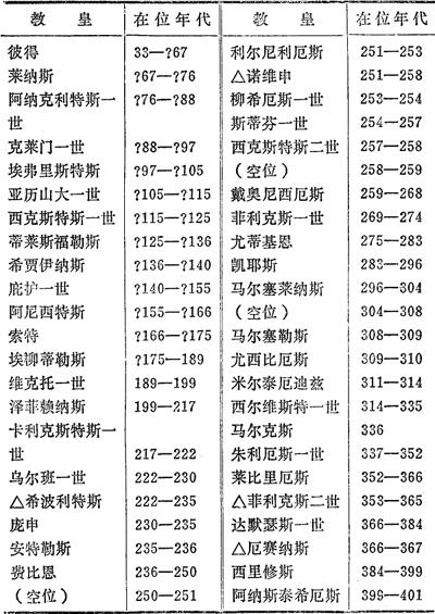 罗马教皇表(标“△”是争位教皇名字)