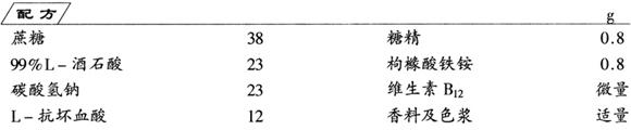 按配方量将各成分混合研细,充分混合均匀,以4.2g为1锭直接将粉末加压成锭,即为成品,可供食用。