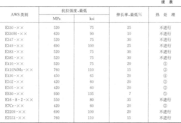 释义 | 美国手工电弧焊用不锈钢焊条标准概述 美国国家标准ANSI/AWS A5.4-1992《手工电弧焊用不锈钢焊条标准》为美国焊接学会在1992年颁布的最新版本。由于我国国家标准GB/T 983-1995基本上采用美国国家标准,所以两种标准是类似的,基本上可当量使用,ANSI/AWS A5.4的不锈钢焊条同样按未经稀释的焊缝金属化学成分以及焊接电流和焊接位置分类。未经稀释焊缝金属的化学成分见表3.2-5,焊接电流类型和焊接位置见表3.2-6,表3.2-7列出上述焊条全焊缝金属的力学性能要求。 表3.2-5 未经稀释的焊缝金属化学成分(ANSI/AWS A5.4-1992) 注:①应对表中列有规定值的元素进行分析。然而,如果在分析的过程中发现有其他元素存在,则应进一步分析,以确定这些其他元素的总含量(铁除外)不超过0.5%。 ②单一值为最大百分数。 ③类别号的后缀-××可以是-15,-16,-25或-26。 ④金属和合金的SAE/ASTM统一编号系统。 ⑤钒(V)0.10%~0.30%。 ⑥钛(Ti)最大为0.15%。 ⑦钨(W)应为1.25%~1.75%。 表3.2-6 焊接电流类型和焊接位置(ANSI/AWS A5.4-1992) 注:①DCEP表示直流、焊条接正极(直流反极性);AC表示交流。 ②等于和大于Φ4.8mm的焊条不推荐用于全位置焊接。 与GB/T 983-1995不同的是在AWS A5.4焊条类别中没有国标中的下列型号:E317MoCu-××、E317MoCuL-××、E318V-××、E330MoMnWNb-××以及E16-25MoN等。 表3.2-7 全焊缝金属力学性能要求(ANSI/AWS A5.4-1992) 注:①加热到730~760℃(1350~1400℉)保温1h,以不高于60℃(100℉)/h的速度炉冷到315℃(600℉),然后空冷到室温。 ②加热到840~870℃(1550~1600℉)保温2h,以不高于55℃(100℉)/h的速度炉冷到595℃(1100℉),然后空冷到室温。 ③加热到595~620℃(1100~1150℉)保温1h,然后空冷到室温。 ④加热到760~790℃(1400~1450℉)保温2h,以不大于55℃(100℉)/h的速度炉冷到595℃(1100℉),然后空冷到室温。 ⑤加热到1025~1050℃(1875~1925℉)保温1h,然后空冷到室温。随后,在610~630℃(1135~1165℉)下保温4h,再空冷到环境温度进行沉淀硬化处理。 焊条类别的编制方法如同GB/T 983-1995,“E”后面的数字及化学符号表示焊缝金属的名义成分,短划后的数字表示焊接电流和焊接位置。 |