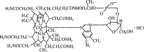 C62H89CoN13O15P·HCl 相对分子质量 1382.7 性状 暗红色结晶性粉末,无臭,无味,有强吸湿性,溶于水,微溶于乙醇、苯,不溶于乙醚、丙酮、四氯化碳。 制法 以羟钴铵为原料与焦亚硫酸钠置换,与亚硝酸盐亚硝基化等,最后与盐酸制成盐酸盐。 本品同样具有维生素B12活性。其他参见氰钴胺素。 |