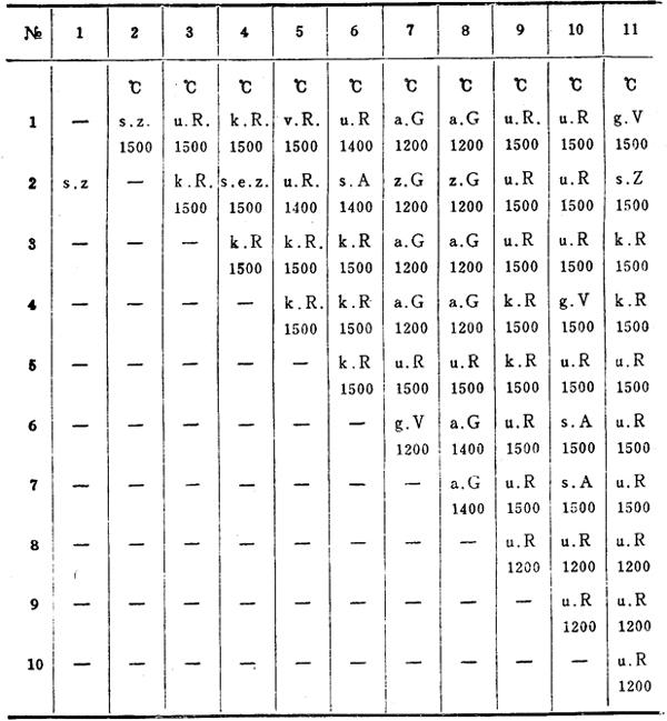 释义 | 耐火砖的化学组成和相互接触反应 表中略语注释: s.e.z:微熔 a.G:粘合(因玻璃相出现) s.z:熔融 z.G:玻璃相共熔 u.R:稍有反应 g.V:稍微玻璃化 k.R:不反应 s.A:相互显着侵蚀 v.R:完全反应 |