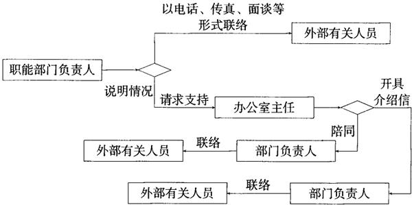 1.公司各职能部门负责人在一定范围内均可代表公司进行对外联络。总经理代表公司进行投资、融资、合并、分立、解散、清算及对公司全局工作有重大影响事项的对外联络。同时还负责公司生产、经营、管理等日常全面工作的对外联络。各职能部门实行对口单位联络。