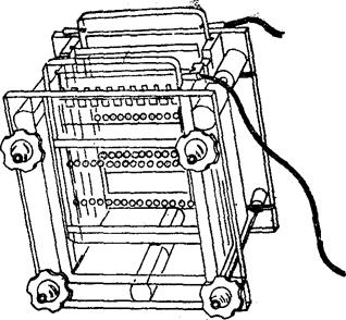 释义 | 聚丙烯酰胺凝胶圆柱电泳 1.仪器和试剂 (1)仪器 1)电泳仪和圆柱电泳槽(图11-2)。 图11-2 圆柱电泳槽 图11-3 垂直板电泳槽 2)若干小玻璃管,内径为5-6mm,外径为7-8mm,长度约为70-100mm; 3)离心机,每分钟转速约为4000-i6000转和5ml离心管; 4)微量进样器 50-100μl; 5)真空干燥器和真空泵; 6)长针注射器,针头长100mm; 7)研钵或玻璃匀浆器(2ml或5ml); 8)日光灯20-40W; 9)移液管 25、10、5、2、1和0.5ml; 10)电子天平,精确度达到0.0000g; 11)细长玻璃滴管; 12)小烧杯 50ml和100ml; 13)洗耳球; 14)棕色和白色广口瓶:100、500和1000ml; 15)量筒 10、50、100、250和1000ml; 16)滴瓶60ml。 (2)试剂 1)贮存液和凝胶溶液(表11-1)。 表11-1 贮存液和凝胶溶液的配置(1) 2)0.1g溴酚蓝溶于100ml水中,作为前沿指示剂; 3)蛋白质和酶的染色液将在本章11.3.3.3.介绍; 4)保存液7%醋酸(v/v)。 图11-4 水平板电泳槽 2.操作方法 (1)分离胶制 备 剪小块正方形橡皮胶布,将玻璃管一端封住,备用。取贮存液1、2和3号放在室温下平衡,然后将试剂1、2和无离子水,按1∶2∶1的体积比例混合于1只小烧杯中,另取3号试剂4份放于另一只小烧杯中,再取一只小烧杯放入水,并作好标记。把这三只杯放入真空干燥器内抽气10分钟以上,排除气泡,将两杯溶液快速混匀,然后马上用滴管将胶液灌入垂直的各个小玻璃管中,从管底部壁上开始加,避免产生气泡,加至60-70mm高度,立即用注射器加上一薄层经抽气的水,把胶液面覆盖住,注意勿搅动胶面,在室温放置,让其聚合。可看到,在刚加水时,胶和水之间有界面,随聚合而逐渐消失,不久又会出现界面,表明表面凝胶已聚合。 (2)浓缩胶制备 取出贮存试剂4、5和7,室温平衡后,按1∶2∶4比例混合于一烧杯中,另取试剂6号1份放于另一烧杯中,放在真空干燥器里抽气,利用抽气时间移去分离胶面上的覆盖水,再用吸水纸吸干,但注意不要碰到胶面。待抽气完毕,立即将二烧杯液混匀,速将此胶液加到分离胶面上,约10-15mm高度,再小心地加一层覆盖水,然后移到日光(日光灯)下进行光聚合,大约放置10-30分钟,让其完全聚合。待看到胶呈乳白色为止。待胶的聚合完成后,除去覆盖水,并用小滤纸条吸干待用。 (3)安装凝胶玻管 将小玻管下端的橡皮胶布剥去,切勿损坏胶条。在浓缩胶一端套上一小段乳胶管,将玻管安装在圆形电泳槽上。注意安装垂直并应紧密,以防止槽缓冲液漏下。 (4)样品准备和加样(以水稻种子为例) 取各样品种子5-50粒,注要不能取霉烂变质种子,剥去谷壳后切下干胚或取下萌动胚,分别放小型玻璃匀浆器或研钵,各加入20%蔗糖缓冲溶液200-300μl,充分研磨成匀浆,让其静止或离心。然后用微量进样器分别从各样品吸取上清液30-100μ1,分别加在各玻管的胶面上,再加上1滴0.1%溴酚蓝指示剂。 (5)加入电极缓冲液和电泳 分别在上、下槽注入电极缓冲液,上槽淹没小玻管口,下槽满上小玻管下端,检查玻管两头,赶走气泡。 上槽接负极,下槽接正极。然后打开开关通电,起初电流为1mA/管,20分钟后逐渐把电流增加到2mA/管。电泳至溴酚蓝指示剂接近胶底部为止,时间大约为1.5-2.5小时。如已分离良好,可提早结束。 (6)剥下胶柱 先将凝胶玻管从电泳槽上取下,先取1支带长针头注射器,吸满水,将针头从胶管一端小心地插入管壁与凝胶之间,转动玻管,使针头在管壁与凝胶之间螺旋式前进,同时注入蒸馏水,使胶条随水压和润滑作用自行脱出。 (7)染色 不同酶和蛋白质可用不同特异的染色方法。这里仅介绍酯酶的染色方法。酯酶染色液是称取50mg α-醋酸萘酯和50mg β-醋酸萘酯溶于3ml丙酮水(1∶1)中,然后加入100mg坚牢兰B(或R盐),用0.1M pH6.5磷酸缓冲液稀释到150ml,用于染色。 取出的胶条经蒸馏水漂洗后,放入染色液中,放在25-35℃保温,待酶带呈现桃红色为止。 (8)洗脱和保存 倒去染色液,用蒸馏水漂洗胶条数次,放入5%醋酸脱色至背景清晰,然后用7%醋酸保存。 3.谱带鉴定 根据已知品种的谱带特征,鉴定出所检样品的真伪或区分本品种和异品种,测定品种纯度。 【参考文献】: 〔1〕颜启传(1984),杂交水稻及其三系种子的真实性和纯度检验,《种子》1984年第3期第15-18页。 〔2〕颜启传(1984),应用聚丙烯酰胺凝胶酯酶同工酶垂直板电泳鉴定杂交水稻及其三系种子真实性和纯度,《浙江农业科学》,1984年第4期第196-199页。 〔3〕颜启传(1986),水稻杂交种及其三系种子鉴定技术的进展,《种子世界》,1986年第8期,第2-3页。 〔4〕颜启传、黄亚军(1986),杂交玉米吉单101及其亲本自交系种子真实性和纯度测定技术的研究,《种子》,1986年第5期,第12-15页。 〔5〕帅素云等(1983),用酯酶同工酶分析法鉴定杂交水稻种子纯度,《江苏农业科学》,1983年第9期第16-20页。 〔6〕陆士伟等(1982),应用酯酶同工酶测定水稻杂交纯度的研究,《中国农业科学》,(9):10-15。 〔7〕汪德耀主编(1981),细胞生物学实验指导,人民出版社,第377-385页。 〔8〕张龙翔等主编(1981),生化实验方法和技术,人民教育出版社,第99-111页。 〔9〕上海植物生理学会编(1985),植物生理学实验手册,上海科技出版社,第470-490页。 〔10〕美M.J.Siciliano等编(1980),凝胶上酶的分离和显现,《植物生理学通讯》,第4期,第59-68页。 〔11〕南京大学生物系编(1979),生物化学实验,人民教育出版社,第64-71页。 〔12〕胡能书、万贤国编(1985),同工酶技术及其应用,湖南科学出版社。 〔13〕陆士伟、赖天斌编着(1987),同工酶在农业上的应用,广东科技出版社。 