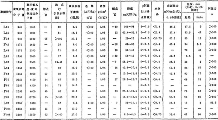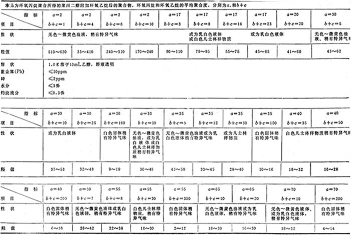 释义 | 聚环氧乙烷-聚环氧丙烷 别名 聚醚 结构式 非离子型表面活性剂类型之一。这类表面活性剂是以聚氧丙烯段为疏水基团、聚氧乙烯段为亲水基团的嵌段高分子共聚物,简称聚醚。由美国维安多特(Wyandotte)化学公司首创,商品名为“P1uronic”,有一系列商品牌号。其后又有非专利商标名称“Poloxamer”。 性能 Pluronic产品随着聚氧丙烯段的聚合度不同和环氧乙烷加成摩尔数不同,可以得到一系列产品。其分子量、亲水亲油平衡值(HLB)以及物化特性可在广泛的范围内变化。它可以呈流动液体(以L为标记)、膏状(以P为标记)和固态(以F为标记)。一段环氧乙烷摩尔数>25(即b+c>25)时为固态产品。活性成分为100%,不易吸湿,制成片状的聚醚即使长久曝露于空气中也不会胶结。分子量可从1000~16000,从不溶于水直到在沸水中全溶也不会混浊,亲水亲油平衡值从3.5~29。 毒性:Pluronic系聚醚的安全性高,对人身是安全的。某些Pluronic商品牌号的表面活性剂口服毒性如下表。 质量规格(ICI公司;JSCⅠ-Ⅱ) Pluronic系列商品的质量标准(ICI公司产品) JSCⅠ-Ⅱ 聚环氧乙烷-聚环氧丙烷质量指标 用途 P1uronic系非离子型表面活性剂,由于低泡和低毒性,可用作乳化剂、消泡剂、分散剂等广泛用于金属加工、清洗、造纸、纤维、石油和医药等行业。 聚醚还是洗涤剂的重要活性组分,具有低泡去油污的好特点。F68还作为水溶性的药物栓剂的基质,本身不被人体所吸收。聚醚还常用作乳化聚合的乳化剂及原油破乳剂。 包装贮运 同其它表面活性剂。 国内生产厂 天津助剂厂。 国外生产公司 ICI公司。 |