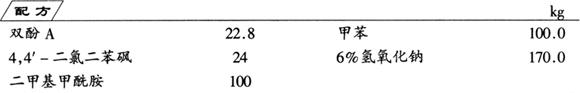 按配比首先将双酚A同氢氧化钠反应而生成双酚A钠盐,加入4,4′-二氯二苯砜及二甲基甲酰胺的溶液中,再加甲苯,进行溶液缩聚,制得产品。
