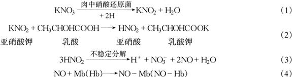 释义 | 肉的发色助剂及其机理 发色助剂包括抗坏血酸和异抗坏血酸及其钠盐、葡萄糖、葡萄糖酸内酯等。亚硝酸钠和硝酸盐与肉混合后,产生硝酸等氧化物质,对肉的发色不利。上述发色助剂的共同点是都易氧化,所以有极强的还原性,能破坏所产生的氧化性物质,不使其与肌红蛋白发生反应,从而保证了亚硝酸盐的发色作用。另外,由于亚硝酸还原生成的一氧化氮(NO)对肉的发色是不可缺少的,而还原性物质有助于氧化氮的生成,因这些还原性的物质本身并无发色功能,故称其为发色助剂。但如果腌制盐水长期含有这些化合物,或在温度升高时,就有可能使亚硝酸盐转化为一种对人体有害的一氧化氮气体,同时还可降低盐水的亚硝酸盐含量,减少对肉类的有效作用程度。如果将含有抗坏血酸或异抗坏血酸的腌制盐水保持在10℃或更低条件下,且呈碱性或微酸性,其稳定时间约为1d,如盐水呈酸性,反应则会很快减缓。 目前世界各国在生产肉制品时,都非常重视抗坏血酸的使用,其最大使用量为10-3(lg/kg),一般为0.02%~0.05%。另外,腌制剂中加谷氨酸会增加抗坏血酸的稳定性。而抗坏血酸对热或重金属极不稳定,所以一般用稳定性好的钠盐。因为抗坏血酸有还原作用,即使硝酸盐的添加量少也能使肉呈粉红色。 为了使肉制品获得红润鲜艳的色泽,抑制肉毒杆菌,通常选用具有发色和抑菌双重作用的硝酸盐和亚硝酸盐作为发色剂。我国《食品添加剂使用卫生标准》(GB 2760-1996)中规定腌肉时亚硝酸钠用量不超过0.15×10-3(0.15g/kg),普通肉制品中亚硝酸残留量不得超过3.0×10-5(3.0mg/100g)。实验表明,火腿制品中添加1.32×10-4(0.132g/kg)的亚硝酸盐发色效果比较理想,但在无其它措施时,常会导致成品中亚硝酸钠的残留量超标。若使用最大允许量的1/3~1/2,其残留量接近3.0×10-5,但发色效果不理想,需添加发色助剂。其助色机理与硝酸盐或亚硝酸盐的发色过程紧密相连。 如前所述,硝酸盐或亚硝酸盐的发色机理是其生成的亚硝基(NO)与肌红蛋白或血红蛋白形成显色物质,其反应如下: 由反应(4)可知,NO的量越多,则呈红色的物质越多,肉色则越红。但由反应式(3)可知,亚硝酸经自身氧化反应,只有一部分转化成了NO,而另一部分则转化成了硝酸。硝酸具有很强的氧化性,使红色素中的还原型铁离子(Fe2+)被氧化成氧化型铁离子(Fe3+),而使肉的色泽变褐。同时,生成的NO可以被空气中的氧氧化成NO2,进而与水生成硝酸和亚硝酸: 2NO+O2→2NO2 2NO2+H2O→HNO3+HNO2 (5) 反应结果不仅减少了NO的量,而且又生成了氧化性很强的硝酸。 发色助剂具有较强还原性,其助色作用是通过促进NO生成,防止了NO及亚铁离子的氧化。以抗坏血酸为例: 比较反应式(3)和(6)可以看出,在抗坏血酸的还原作用下,亚硝酸与抗坏血酸反应生成较多的NO,且在生成物中无氧化性很强的硝酸,使最终产品中亚硝酸钠的残留量减少。同时,抗坏血酸不仅能防止NO及Fe2+被空气中的氧所氧化,还能使已氧化的高价铁离子还原成2价铁离子。因此,抗坏血酸还具有护色作用。又如,葡萄糖酸-δ-内酯能缓慢水解生成葡萄糖酸,造成腌制时的酸性还原环境,促进亚硝酸盐向亚硝酸转化,利于NO-Mb和NO-Hb的生成。 |