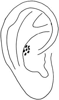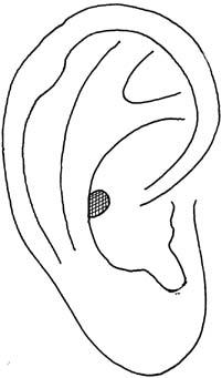 释义 | 肝癌的耳穴诊断 一、耳穴诊法 原发性肝癌,在欧洲占所有癌症的1.2%,美国占2.5%,亚非地区肝癌发病率较高,甚至占癌症的30%~50%,莫桑比克男性肝癌发病率高达103.8/10万人。中国东南沿海尤其在江苏启东5年平均发病率和死亡率分别为55.03/10万和47.93/10万。从病理学分类:结节型占2/3,另有巨块型及弥漫型,其中弥漫型较为常见。在1977年全国肝癌防治研究协作会拟定分型分期标准如下:①单纯型:临床和化验均无明显肝硬化表现;②硬化型:临床和化验有明显肝硬化的症状;③炎症型:病情发展快伴持续性高热,或谷丙转氨酶持续性增高。 视诊:肝大区,肝癌点基底部色泽变深,皮肤纹理有梅花型环形凹陷。 扪诊:用示指、拇指轻轻扪耳郭相应穴位,感觉有尖岛状、针尖状、结节状、小片状变硬,其硬度与患者本人鼻骨相近似。 触诊:用探棒头轻轻按压左右肝大区,肝癌点有明显触痛,以病人眨眼为度。 电声仪测诊:用RDXI型人体信息仪探测7个穴位;即耳垂3区、耳垂6区及耳垂9区边缘正面(正特异区)和背面,(背特异区),肾上腺,皮质下,耳甲12区中上1/2(左肝大区),耳甲12区中下1/2(右肝大区),耳甲12区中点(肝癌点) 结果:上海市耳穴诊断协作组,应用上述方法,于1971年检查万余人次疑似肝癌636人次,经耳穴探查结果与病理切片、甲胎蛋白(AFP)等进行对照,结果如下: 对已知95例肝癌,36例肝硬化及47例肝炎患者的耳穴,经视诊、棒压诊及扪诊相互比较观察发现左右肝大区(包括松肌点)都见环形凹陷、肝癌呈梅花型;肝硬化呈密集状而肝炎则为散在型。在正特异区(耳垂正面外侧)肝癌刺痛明显,其他则极弱或无刺痛。在肝阳1,2(结节穴区上、下部位)肝癌与肝硬化均见色素沉着而肝炎则无色素。肝区局部肝炎较柔软,鲜红色;肝硬化为均匀硬结(中央苍白,周围暗红),肝癌呈坚硬状(面中点、线中点、点中点),无红晕。见图14~17。 二、典型病例 男,52岁。在安徽省某县医院会诊时,见此患者整个耳郭无光泽,在两侧对耳轮、左右胃区均无异常迹象,仅左右肝大区呈片状肥厚,尤其右肝大区有轻度硬结伴右肝大区及肝癌点有梅花型环型凹陷及不规则新生血管,基底部有明显褐色素沉着,笔者据此耳穴诊断为右肝叶肝癌自发性破裂出血,作过止血手术。后经再查阅手术记录,证实昨天下午因腹腔内右肝癌自发性破裂大出血,作过大网膜缝扎止血术,并送病理活检。 图14 肝癌呈梅花型(右耳) 图15 肝硬化呈密集型(右耳) 图16 慢性肝炎呈散在型(右耳) 图17 脾肿大呈水纹状(右耳) 隔1周病理诊断为原发性肝癌自发破裂,与耳穴诊断完全符合。 |
