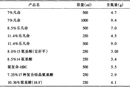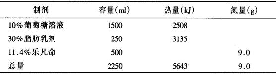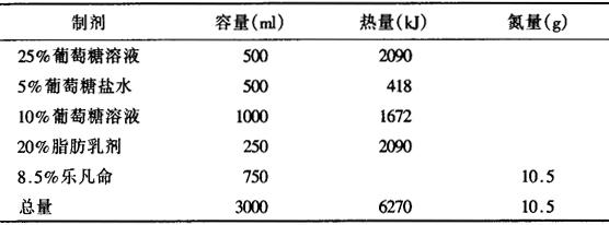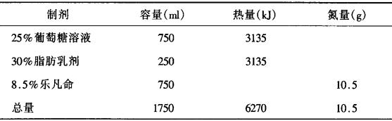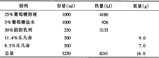 释义 | 肠外营养 【适应证】 凡不能或不宜经口摄食超过5~7日的患者,都是肠外营养(parenteral nutrition,PN)的适应证。外科领域的适应证有以下一些: 1.营养不良者的术前应用。 2.消化道瘘。 3.重症急性胰腺炎。 4.短肠综合征。 5.严重感染与败血症。 6.大面积烧伤。 7.肝、肾衰竭。 8.肠道炎性疾病活动期。 9.肿瘤患者化疗、放疗期。 10.消化道先天性畸形。 【肠外营养制剂】 1.葡萄糖:是PN的主要热量来源,各组织都能利用。补充100g/d,就有明显的省氮作用。监测尿糖、血糖,能了解其利用情况。但高浓度溶液的渗透压很高,不能从周围静脉输入。机体氧化葡萄糖的能力为5mg/(kg·min),过多输入可致高血糖、糖尿。应激时,糖的利用率更低。常用于肠外营养的溶液是5%、10%、25%及50%浓度(表6-1)。 表6-1 肠外营养溶液的含热量 2.脂肪乳剂:是另一种重要的热量来源。10%溶液可供能量多达4.18kJ/ml。10%及20%溶液都为等渗,可经周围静脉输入。单独使用时输注速度从1ml/min开始,逐渐加快,在5~6小时内输完500ml。应激状态下其氧化率加快。常用的制剂有:10%、20%和30%英脱利匹特(Intralipid),后者用于需限制入水量者。脂肪乳剂有长链(LCT)和中链(MCT)两种,前者含有必需脂肪酸,后者在体内代谢更快。兼含MCT和LCT(1∶1)的制剂适用于特殊患者(如肝硬化)。常用的制剂有10%及20%力保肪宁(Lipofundin MCT/LCT)。各种脂肪乳剂所含热量见表6-2。 表6-2 脂肪乳剂的含热量 脂肪乳剂的渗透压分别为: 10%脂肪乳剂为300mmol/L;20%为350mmol/L;30%为310mmol/L。 3.复方氨基酸注射液:是肠外营养的惟一氮源。 (1)通用的制剂:称平衡型氨基酸溶液,含必需氨基酸8种,非必需氨基酸8~12种。常用产品有:7%凡命(Vamin)、 11.4%乐凡命(Novamin)、14-氨基酸-823等。 (2)特殊型氨基酸溶液:用于肝病的溶液含支链氨基酸(BCAA)较多,常用的产品是14-氨基酸-800。用于肾病的溶液仅含8种必需氨基酸和少数几种非必需氨基酸,产品有肾必安。用于严重创伤的溶液含BCAA更多,产品有氨复命-HBC。为补充谷氨酰胺(Gln)的产品有Glamin及力肽(Dipeptiven)等。 复方氨基酸溶液的含氮量随产品的不同浓度而异(表6-3)。 表6-3 常用氨基酸溶液的含氮量 氨基酸溶液的产品种类繁多,其含氮量各不相同,使用时需详细参阅产品说明书,以了解其确切的含氮量。 含谷氨酰胺的产品有力肽和Glamin。 力肽:每100ml内含丙氨酰-谷氨酰胺20g。有50ml及100ml两种包装。不可直接输入,必须先与其他氨基酸溶液或含有氨基酸的输液相混合,然后输入。每日用量为1.5~2.0ml/kg。 Glamin:是一种含有甘氨酰-谷氨酰胺(Gly-Gln)的复方氨基酸溶液。有两种包装:500ml及1000ml。Gly-Gln含量为30.27g/L。推荐用量为每日7~14ml/kg。 4.电解质制剂 (1)钾、钠、氯制剂:10%氯化钾和10%氯化钠。 (2)钙制剂:10%葡萄糖酸钙。 (3)镁制剂:25%硫酸镁。 (4)有机磷制剂:格利福斯(Glycophos)的成分为甘油磷酸钠。 5.维生素制剂:通常分为水溶性及脂溶性两种。均为复方制剂,每支含量为成人每日基本需要量。水溶性维生素制剂有九维他、水乐维他N(SoluvitN)等。脂溶性维生素制剂有维他利匹特(Vitalipid)。 水乐维他N的成分(每支的含量):维生素B13mg;维生素B23.6mg;烟酰胺15mg;维生素B64mg;维生素C100mg;泛酸15mg;维生素H60μg;维生素B125ug;叶酸0.4mg。 维他利匹特的成分(每支的含量):维生素A330iu;维生素D220iu;维生素E1iu;维生素K115μg。 6.微量元素制剂:也是复方制剂,每支含量为成人每日基本需要量。产品有安达美(Addamel)。其每支中各成分的含量分别为(单位均为μmol):铬0.2;铜20;铁20;锰5;钼0.2;硒0.4;锌100;氟50;碘1。 7.生长激素:具有明显促合成代谢作用,适用于少数特殊患者。产品及其剂量分别为:珍怡(Geneheal)4iu/支;金磊(GenLei)4.5iu/支;思增(Saizen)4iu/支。用法:1支,bid或tid,皮下注射。 【全营养混合液】 将各种营养素在体外先混合在3L输液袋内(称全营养混合液,即TNA液)再输入的方法最符合生理。同时进入体内的各种营养素,各司其职,最有利于合成代谢。在3L袋中,高渗的葡萄糖液被稀释,袋中的脂肪乳剂可能因此而缓慢输入,都可减少并发症的发生。且溶液的渗透压已降至容许经周围静脉输入。但TNA液的制备必须在严格的无菌条件下进行(在超净工作台内),而且混合的程序也有严格的规定: 1.首先将电解质制剂、水溶性维生素制剂及微量元素制剂分别加入葡萄糖溶液和氨基酸溶液中。 2.将脂溶性维生素加入脂肪乳剂中。 3.然后将葡萄糖溶液及氨基酸溶液混入3L袋内。 4.最后将脂肪乳剂混入3L袋中,随时轻轻摇匀。 TNA液制备的注意点:①不可将电解质溶液直接加入脂肪乳剂内,以免影响乳剂的稳定性;②钙、磷制剂需先分别加在不同的葡萄糖或氨基酸瓶内,以免发生沉淀;③TNA液为肠外营养所专用,除必要时可在TNA液中加入一定量的胰岛素或(和)肝素钠之外,不能加入任何其他药物,如抗生素、止血剂、碱剂等;④TNA液需新鲜配制,原则上应当日使用,若系备用,则应予4℃冷藏。 【肠外营养液配方原则和实例】 1.全肠外营养(TPN)内所含的热、氮量根据患者应激程度而定(表6-4): 表6-4 TPN的热、氮量 2.基本需要量的TPN配方(表6-5): 表6-5 基本需要量的FPN配方 注:糖∶脂肪=2∶1 热量(kJ)∶氮(g)=598∶1 3.中等应激的TPN配方(表6-6): 表6-6 中等应激的TPN配方 注:糖∶脂肪=1.6∶1 热量(kJ)∶氮(g)=510∶1 4.适用于周围静脉输注的TPN配方(表6-7): 表6-7 适用于周围静脉输注的TPN配方 注:糖∶