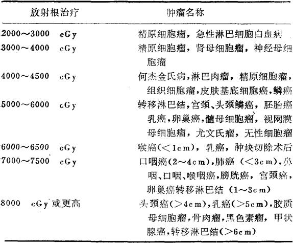 释义 | 肿瘤和组织的放射敏感性 肿瘤的放射敏感性与其组织来源有关,也和细胞的分裂周期有关。处于分裂状态的细胞,分化不好的细胞对放射敏感;处于静止状态的细胞,分化好的细胞对放射不敏感。所谓放射敏感或抗拒是相对而言,一是肿瘤组织与其来源或附近正常组织相比较,另一是各种肿瘤之间的比较,表3-3列出不同组织来源的肿瘤的放射敏感性。 表3-3 各种组织和肿瘤的放射敏感性 放射敏感性的肿瘤有:淋巴瘤、生殖细胞肿瘤、未分化癌,一般给予较低的剂量即可控制,正常组织损伤轻微(图3-1a),有时此类肿瘤较大,位置特殊,复发后再治,肿瘤就不那么敏感。另一方面,这类肿瘤易转移,有早期淋巴或血行扩散倾向,疗效倒不一定好。 图3-1 肿瘤的放射敏感性对肿瘤控制和组织损伤的影响 放射敏感(a),放射有效(b)及放射抗拒(c)三类肿瘤控制率,正常组织损伤程度与放射剂量的关系(模式图) 放射抗拒性肿瘤(或不敏感肿瘤)多来源于经常处于静止状态的细胞、组织,如骨、软骨、横纹肌、神经等,这类肿瘤施予较大的剂量常不能控制,而这个剂量已可使邻近正常组织产生不可修复的损伤(图3-1c),但是这种肿瘤中的个别病例,放疗也有一定效果。肿瘤放射生物学的进步,从改变治疗方案也可以提高放射敏感性,如现在已知黑色素瘤的Dq值较大,采取每周二次,每次500~600cGy的治疗方案,疗效有所提高,目前对某一个病人的肿瘤放射敏感性尚不能预测,因此治疗时有一定盲目性。 介于敏感和抗拒之间的中度敏感的肿瘤如:鼻咽癌、上皮癌、宫颈鳞癌、食管癌、某些头颈部癌,它们的控制剂量接近正常组织损伤的剂量(图3-1b),有一定的放射敏感性,远处转移发生较晚,所以治愈率提高,应当明确放射治愈的可能性与放时敏感性并不一致。 肿瘤的放射敏感性与其邻近的正常组织放射敏感性有关。宫颈癌和食管癌同为鳞状上皮癌,头皮癌与外阴癌同为皮肤鳞癌,但肿瘤局部控制率,存活率有很大差别,这与肿瘤周围的环境有关。同一肿瘤,侵犯的范围不同,放射敏感性亦不同,如鼻明癌侵及颅底,就明显影响它的放射敏感性,肿瘤的大体类型也影响放射敏感性、食管癌中的蕈伞型、髓质型较好,缩窄型最不敏感。 表3-4列出了不同肿瘤的放射根治量。从表看出某一种肿瘤的根治量幅度较大,如最敏感的精原细胞癌根治量为2000~4500cGy的标本中即有“无癌”,随剂量增加标本的“无癌率”也增加,但并非剂量越高“无癌率”也越高。根治量不但因肿瘤种类而异,也受肿瘤体积大小影响,表3-5列出了上呼吸道、上消化道及乳癌肿瘤体积与根治剂量的关系这是一个参考剂量。一般而言,肿瘤愈大,根治量应当愈高,但又不是剂量愈高,疗效愈好,这就是合理剂量的概念,如食管癌6000cGy/6周疗效较高,8000cGy/8周疗效反差,这里存在附近正常组织的耐受性问题、特别是远期反应。 表3-4 不同肿瘤的放射根治量 放射对于正常组织(器官)的损伤,一方面是对其实质的损伤(如脑神经细胞、肝细胞、肌细胞);另一方面是对其间质的损伤,尤其是对血管结缔组织的损伤,某些放射性抗拒组织,如脊髓,受到放射以后即刻反应不严重,而晚期反应显着,主要是损伤了间质的小血管,从而影响了实质细胞的血液供应。 器官对放射线的耐受性与临床关系密切,一般而言,肿瘤量应少于附近正常组织耐受量,最低耐受剂量(TD5/5)即指在治疗后5年发生的损伤不大于5%的剂量,而最大的耐受量TD50/5应为治疗后5年内发生的损伤为50%损伤剂量,不同的器官的损伤剂量不同,不同器官受到损伤后产生的危害也不同,依照危害性分为三类:Ⅰ类的损伤后果严重,可危及生命或致残;Ⅱ类器官的损伤较轻或中度,不大会致死、致残;Ⅲ类器官的损伤多较轻,或能恢复。表2-5列出这三类器官的辐射耐受剂量。 表3-5 肿瘤体积与放射控制剂量的关系 |