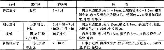 表1-3-3 胡萝卜主要品种及其特性