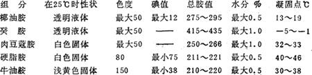 性能 合成的十二胺为微黄色液体,微溶于水,溶于乙醇、乙醚等有机溶剂。有特殊气味,具有胺的通性。合成十八胺、油脂十八胺均为淡黄色固体,不溶于水,溶于乙醇、乙醚等有机溶剂,呈弱碱性,具有特殊气味及胺的通性。