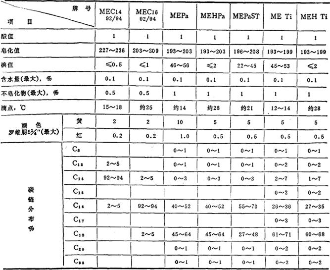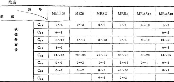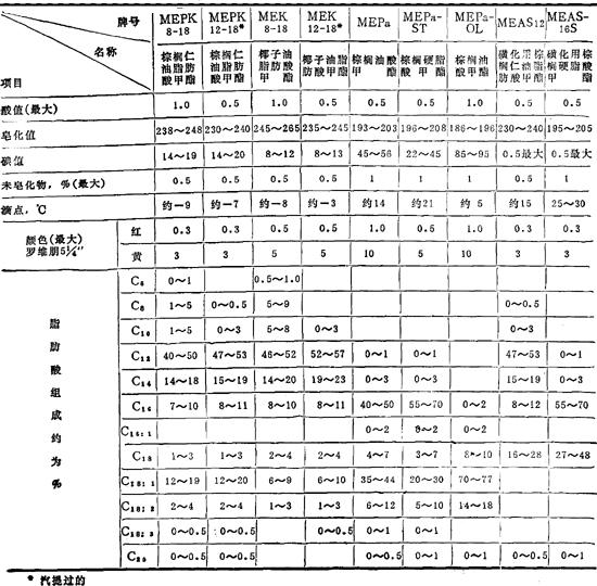 释义 | 脂肪酸甲酯 别名 甲酯 结构式 R-COOCH3 其中R因原料而异,如椰油脂肪酸甲酯,R=C11H23;棕榈油脂肪酸甲酯,R=C15H31 性能 脂肪酸与甲醇在硫酸存在下,进行酯化反应,生成脂肪酸甲酯。用油脂与甲醇进行醇解反应,也可制成脂肪酸甲酯,同时副产物为浓度约70%的甘油。脂肪酸甲酯为液体,相当稳定,没有腐蚀性,沸点较低。在低温时容易被苛性钠或苛性钾皂化,能生成气化的甲醇。 质量规格(吉林油脂化工有限公司;山西太原日用化学厂;湖北枝城油脂化学厂) 吉林油脂化工有限公司脂肪酸甲酯 山西太原日用化学厂椰油酸甲酯 湖北枝城油脂化学厂乌桕油甲酯 用途 脂肪酸甲酯经加氢,可制成脂肪醇,醇经与乙醇胺反应可生成烷基醇酰胺;经与苛性钠、钾反应可制肥皂。它是油脂化学品的重要原料,广泛应用干洗涤剂、化妆品等工业。 国内生产厂 吉林省吉林油脂化工有限公司、山西太原日用化学厂、湖北枝城油脂化学厂、福建建阳油脂化学厂等。 国外生产公司(厂)德国汉高公司,汉高公司马来西亚厂,美国P&G公司。 国外质量规格参考(德国汉高公司;汉高公司马来西亚厂;美国P&G公司) 德国汉高公司脂肪酸甲酯 脂肪酸甲酯(1) 脂肪酸甲酯(2) 脂肪酸甲酯(3) 汉高公司马来西亚厂脂肪酸甲酯 蒸馏级脂肪酸甲酯 分馏级脂肪酸甲酯 美国P&G公司脂肪酸甲酯 脂肪酸甲酯 |