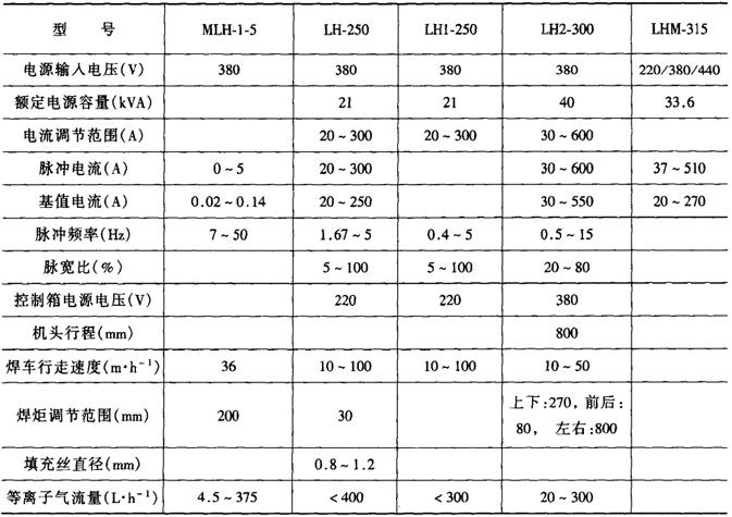 表1-7-12列出了国产脉冲等离子弧焊机的技术参数。