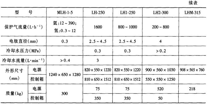 表1-7-12 常用国产脉冲等离子弧焊机的技术参数[4]