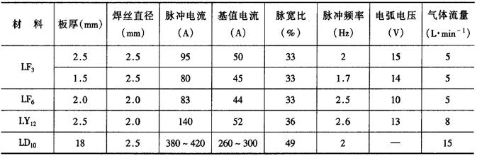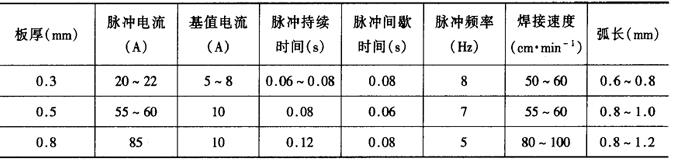 字词 | 脉冲钨极氩弧焊典型焊接规范参数 |