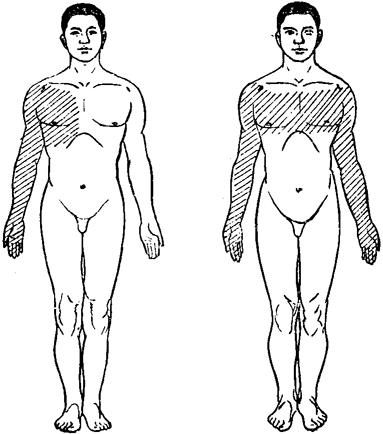 释义 | 脊髓空洞症 脊髓空洞症是一种脊髓疾病,形成空洞的原因可能有先天性、外伤及出血等,多发生在脊髓中央管附近,主要累及传导冷热、疼痛觉的感觉传导束,但由于空洞并非圆形,所以症状常多样性。 【诊断要点】 (一)常见上肢或胸背部痛、温觉消失,并有触觉、震动觉保持正常的感觉分离现象。 (二)病人感觉障碍区,常被热水等烫伤。常多因此症状,致使病人发觉自己有病才就诊。 (三)半侧上衣式感觉障碍(图103)。 图103 脊髓空洞症感觉障碍 斜线条区是感觉障碍区 (四)有时见患侧上肢小肌肉萎缩。 (五)与感觉障碍相应节段内,皮肤粗糙,汗腺分泌障碍,指甲营养障碍,以及神经元性骨关节病(关节肿大,有骨质破坏改变,但关节功能影响不甚重等)。 (六)空洞发生于延髓时,可出现三叉神经、面神经、舌咽神经及舌下神经麻痹症状。位于颈脊髓可有颈交感神经麻痹症状群;位于腰髓可有下肢肌萎缩及大、小便功能障碍。 (七)常合并脊柱畸形。 【治疗】 (一)注意保护患区皮肤,以免造成外伤或烫伤。 (二)服用多种维生素类药物。 (三)地巴唑6~10毫克,每日3次。 (四)空洞节段,深部X线治疗。 (五)试用放射性同位素(碘131)治疗。 (六)试用滋阴、补气、补血的中药组方治疗。 |