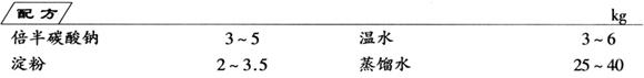 将倍半碳酸钠和淀粉混合,然后加入温水,搅拌混合,成浆液,立即加入蒸馏水,迅速加以搅拌,即得产品。