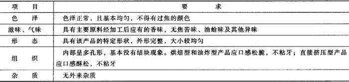 释义 | 膨化食品质量技术标准(QB 2353—1998 GB 17401—1998) 1.分类 本标准适用于以谷物、薯类或豆类等为主要原料,经烘焙、油炸或挤压等方式膨化而制成的,具有一定膨化度的各类酥脆食品,产品按加工工艺可分为4种类型: (1)烘焙型膨化食品:以谷类、薯类或豆类等为主要原料,经焙烧、焙炒或微波等加热方式膨化而制成。 (2)油炸型膨化食品:以谷类、薯类或豆类等为主要原料,经食用油煎炸膨化而制成。 (3)直接挤压型膨化食品:以谷类、薯类或豆类等为主要原料,经挤压机挤压,在高温、高压条件下,利用机内外的压力差,使产品膨化而制成。 (4)花色型膨化食品:以烘焙型、油炸型或直接挤压型膨化食品为坯子,用油脂、酱料或果仁等辅料夹心或涂层而制成。 2.感官要求 (1)烘焙型、油炸型和直接挤压型产品的感官要求。 烘焙型、油炸型和直接挤压型产品的感官要求见表4-1-47。 表4-1-47 烘焙型、油炸型和直接挤压型膨化食品感官要求 (2)花色型产品的感官要求。 花色型产品的感官要求见表4-1-48。 表4-1-48 花色型膨化食品感官要求 3.净含量要求 单件定量包装产品的净含量与标签标注的质量(g)之差,不得超过表4-1-49规定的负偏差。 表4-1-49 膨化食品净含量要求 每批定量包装产品的净含量平均偏差应当大于或者等于零,并且单件定量包装产品的净含量超出计量负偏差(表4-1-50)。 表4-1-50 净含量负偏差表 单位:件 4.理化指标 膨化食品的理化指标见表4-1-51。 表4-1-51 膨化食品理化指标 注:①大颗粒型是指较大颗粒盐粘在表面的产品。 ②油脂型需测,非油脂型不必测。 5.微生物学指标 膨化食品的微生物学指标见表4-1-52。 表4-1-52 膨化食品微生物学指标 6.标志和标签 (1)标签应符合GB 7718-1994规定,标注内容有:食品名称、配料表、净含量、制造者的名称和地址、生产日期、保质期、产品标准号等。 (2)食品名称可使用“新创名称”、“奇特名称”、“牌号名称”或“商标名称”,但同时标明“膨化食品”字样及产品的类型。 (3)外包装标志应符合GB 191-1990的规定。 |
