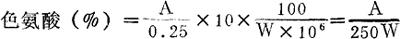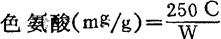 释义 | 色氨酸的测定 方法一:对二甲基氨基苯甲醛法测定色氨酸含量 该法是不必进行蛋白质水解的色氨酸直接测定法。 色氨酸能与对二甲基氨基苯甲醛试剂反应生成蓝色产物,其蓝色的深浅与色氨酸的量成线性关系,因此可以利用作为定量测定之用。测定范围为色氨酸10~100微克。 试剂 (1)21.4N H2SO4:148毫升浓H2SO4加水稀释至250毫升。 (2)对二甲基氨基苯甲醛溶液:600毫克对二甲基氨基苯甲醛溶于180毫升21.4N H2SO4中,溶液浓度达到15毫克/4.5毫升。 (3)1%NaNO2:500毫克NaNO2加水至50毫升。 (4)0.04%NaNO2:取1%NaNO24毫升加水至100毫升。 (5)色氨酸标准液:10毫克色氨酸加少量蒸馏水,再加1~2滴H2SO4使其完全溶解,稀释至100毫升,浓度为100微克/毫升。 操作步骤 1.标准曲线的制备: (1)按表8于试管中分别加入试剂 表8 标准曲线制备中各种不同试剂的加入量 (2)混匀,蔽光室温下放置1.5小时。 (3)各加0.05毫升0.04%NaNO2溶液,摇匀,放置30分钟。 (4)以第一管作为空白对照,于600nm处测定光密度值。 (5)以色氨酸微克数为横坐标,O.D600为纵坐标绘制色氨酸标准曲线。 2.样品的制备与测定 称0.5克脱脂谷物样品,加入0.25%氢氧化钠溶液10毫升,在40℃水浴中振荡30分钟,或在室温下放置8~15小时,再摇动半分钟,静置使其澄清或3000转/分离心10分钟。 取样品提取液0.25毫升,加蒸馏水0.25毫升,再加4.5毫升对二甲基氨基苯甲醛溶液,按制备标准曲线操作,测定其光密度值。 3.计算 式中:W:样品重(克) A:从标准曲线中查得样品提取液中色氨酸含量(微克)。 方法二:荧光法测定色氨酸含量 蛋白质经碱水解后,溶液中的色氨酸在甲醛和含铁离子的三氯乙酸作用生成哈尔满化合物。在荧光条件下具有特定的吸收波长,可以定量测定,色氨酸含量在0~10毫微克分子范围内和相对荧光符合直线关系。 试剂 (1)6.25N氢氧化钠溶液:称取125克氢氧化钠,用水溶解并定容至500毫升。 (2)0.1N氢氧化钠溶液:溶解2克NaOH,并定容至500毫升。 (3)4NHCl溶液:取100毫升浓盐酸用水稀释至300毫升。 (4)10%三氯醋酸溶液:称100克三氯乙酸用水溶解并定容至1000毫升。 (5)0.3毫摩尔/升三氯化铁——三氯乙酸溶液:称三氯化铁(FeCl3·6H2O)40.5480毫克,加入10%的三氯化铁溶解后,再用10%的三氯化铁稀释至500毫升。 (6)1.8%甲醛溶液:取30%甲醛溶液10.9毫升,用水定容至200毫升。 (7)色氨酸标准溶液:称10毫克色氨酸,用2毫升0.1NNaOH溶液溶解于100毫升棕色容量瓶中,用水稀释至刻度,此溶液每毫升含100微克的色氨酸标准溶液。使用时用水配制成每毫升相当于1微克的标准溶液。 操作步骤 1.标准曲线的绘制:准确吸取每毫升相当于1微克的色氨酸标准溶液0.0,0.5,1.0,2.0,3.0,4.0,和5毫升于10毫升容量瓶中,分别加入0.2毫升1.8%甲醛溶液和2毫升含0.3毫摩尔/升的三氯化铁——三氯乙酸混合液。摇匀后于100℃水浴中加热1小时,取出冷却后用水定容至10毫升。 用荧光分光光度计测定其荧光强度,并绘制标准曲线。荧光工作条件为:①激发波长365nm,②发射波长449nm,③激发狭缝3,④发射狭缝3,⑤灵敏度3~5。 2.样品测定:称磨细样品100~200毫克于离心管中,加入4毫升乙醚,摇匀后过夜,然后以3000转/分离心10分钟,将乙醚提取液移入试管内,并用乙醚洗涤残渣三次,合并乙醚液于试管中,在40℃水浴中去除乙醚,残留物中加入4毫升6.25NNaOH溶液,封口,于110℃水解24小时。水解物用4NHCl调节pH6~8,后用水定容至50毫升,过滤,取滤液0.2毫升,加入0.2毫升1.8%甲醛溶液和2毫升0.3毫摩尔/升三氯化铁——三氯乙酸溶液,以下步骤按标准曲线绘制方法进行,测得荧光强度,并从标准曲线中查得样品中色氨酸含量。 3.计算: 式中:C:从标准曲线中查出相当于色氨酸含量(μg); W:测定时相当于样品重量(mg)。 |