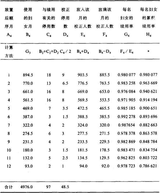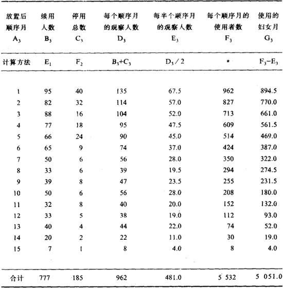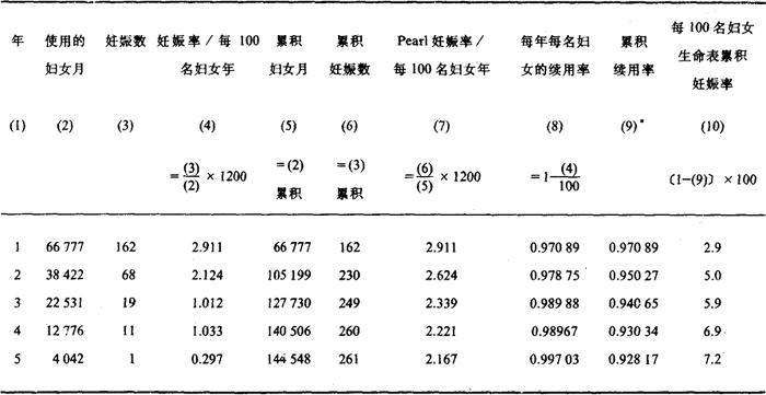 释义 | 节育效果的测量 节育效果是指育龄人群采用节育措施后防止意外妊娠的效能。节育效果可分为理论效果、使用效果和延续效果。理论效果是指在严格的正规的试验条件下的避孕作用,主要取决于节育方法本身的特征并排除了其他因素的干扰。使用效果是指临床实际使用的效果,也就是现实的生活条件下保护妇女不怀孕的效能。使用效果由于受到社会、心理和生物医学等众多因素的影响,因此是一种较为客观的临床实用效果。通常使用效果低于理论效果。延续效果则指在停用某种节育措施后仍有一段延续的时间保护妇女免于受孕的作用。 在节育效果中,理论效果除宫内节育器外,都很难测量。在实际应用中主要指使用效果和延续效果这两类效果的综合。在某些节育措施的专题性研究中有时专指临床使用效果。 对节育效果进行量的测度,必须确定某些科学的和实用的指标,用以测量已婚有生育能力的妇女由于采用节育措施而减少怀孕的机率。目前人们习惯上采用百分率计算法、妇女年计算法和寿命表计算法得到的失败率来评价某种节育措施的效果。后两种计算方法虽然较为复杂,但迄今仍被国际上广为采用。 一、百分率计算法 以百分率表示的失败率是目前计划生育工作中常用的测量节育效果的指标。严格地讲,这些指标不够准确,因为未考虑使用节育措施的时间因素在内,但由于百分率计算简便而广为采用,并且常见诸于专业文献。百分率的测量指标包括节育措施失败率、并发症发生率和副反应率等,现分别加以叙述。 1.避孕失败率 指一定时期内(通常为1年)采取避孕措施失败而受孕的妇女人数与已采取避孕措施的妇女人数之比,通常以百分率表示。其计算公式如下: 应用该指标时应注意如下几点: (1)已采取避孕措施的妇女人数包括女方的配偶采用避孕措施者在内,但仅按女方统计。夫妇双方都采用措施的,只计算主要一方。如女方本身同时采用两种措施的,则以主要措施统计。 (2)避孕失败率的对称指标为避孕成功率。由于两指标是互补指标,其算术和等于1。因此,成功率=1-失败率。为节省篇幅,本节只介绍失败率公式而不列出相应的成功率的计算公式。 (3)避孕失败率是一项综合性的指标,用以概括地说明包括各种避孕措施在内的无效程度,以便概括地了解避孕措施的效果。 (4)为了分析和比较各种不同避孕方法的有效程度,应按避孕措施的类别(如宫内节育器、口服避孕药、外用药具等)分别计算失败率。以便了解不同的避孕措施的效果,找出存在的问题和原因,提出改进办法,为进一步落实有效的避孕措施提供参考依据。 2.绝育复通率 绝育复通率一般按男女性绝育分别计算,其中女性绝育复通率系指一定时期内(通常为一年)采用女性绝育术后自然复通而受孕的妇女数与已采取绝育措施的妇女数之比,并以百分率表示。其计算公式如下: 男性绝育复通率系指在某一规定的期间内(通常为1年)采用男性绝育术后自然复通导致女方受孕的人数(要排除术后6个月内由于残留精子造成的妇女怀孕的人数)与同期内采取男性绝育措施人数之比,并以百分率表示。其计算公式如下: 应用上述指标时应注意如下几点: (1)女性(或男性)绝育复通率是个概括性的指标,其综合性地说明采用女性绝育(或男性绝育)术后因自然复通而失败的程度。由于判定女性(或男性)绝育术后自然复通是个比较复杂的问题,故上述两指标均不够精细。 (2)在计算男性绝育复通率时要注意到,当男方已经绝育而女性未采用任何避孕措施而受孕的情况下,除考虑到男性绝育的自然复通之外,对残留精子造成的怀孕要予以充分地估计,同时也应排除社会因素造成女方怀孕的可能性。 (3)为了进一步分析某项具体绝育术的有效程度,可按绝育术种类(如输卵管结扎术、输精管结扎术等)分别计算复通率。对某些不切断输卵管或输精管的绝育术(如输卵管注药绝育术、输卵管金属夹绝育术、输精管粘堵术、输精管栓堵术、输精管金属环夹术等)也可分别计算失败率,其含义与上述复通率相同。 3.并发症发生率 指某一时期(通常为1年)内,已采用节育措施的人群中并发症发生的概率。通常以千分率表示。其通用的计算公式如下: 应用该率时应注意如下几点: (1)上式为计算并发症发生率的通用公式,但为确切地了解每种节育措施的并发症,则应按节育措施类型分别计算并发症发生率。如输卵管结扎术并发症发生率、输精管结扎术并发症发生率等。 (2)可按节育术类型分别计算各种并发症的发生率,如输精管结扎术后的痛性结节发生率、附睾郁积发生率等。 4.副反应发生率 指一定时期内(通常为1年)已采取节育措施的人中副反应发生的概率。以千分率表示。其通用计算公式如下: 应用该率时应注意如下几点: (1)上述为计算副反应发生率的通用公式,它只是一个概括的指标,仅能笼统的说明副反应发生的频率。 (2)为了了解各种节育措施的副反应发生情况,可按节育措施类型分别计算副反应率。 (3)为了了解某种节育措施的各种副反应的发生情况,可按该节育措施的各种副反应名称分类分别计算各种副反应的发生率,便于节育措施相互之间的比较。 二、妇女年计算法 百分率计算法只表示在使用某节育措施总人数中某事件发生的概率。其缺点在于对节育措施使用时间因素未考虑在内。因此,必须引入人时的