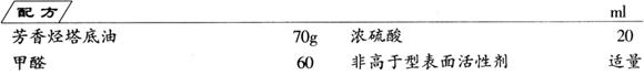 将70g塔底油置于三颈烧瓶中,加入60ml甲醛,搅拌,加热到60℃时慢慢滴入20ml浓硫酸,在40min内滴完。再升温到90℃,反应10h。反应结束后可加适量的非离子型表面活性剂为破乳剂。用70℃热水洗至pH=7,静置分层。取出油层于267Pa压力和34~38℃温度下减压蒸馏出未反应物,直到不再蒸馏出挥发物,剩余物即为芳香醇产品,其颜色为棕黄色或橙黄色。