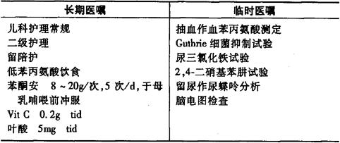 说明:1.及早行低苯丙氨酸饮食治疗,最迟不晚于生后31周。