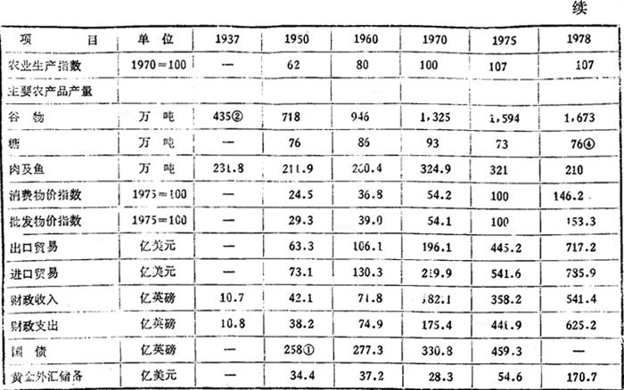 注:①不包括爱尔兰。②1934-1938年平均。③1977年。④1976年。