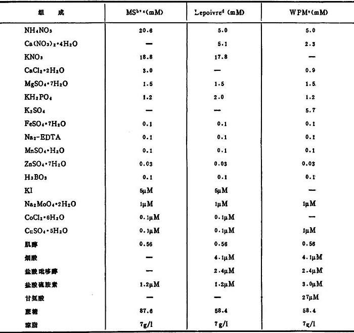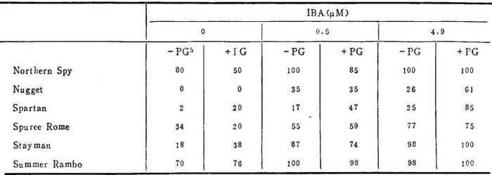 释义 | 苹果 Brown(1975)评论了苹果的历史、来源和早期发展。栽培苹果是Malus各种间互交的结果,最常用的名称有M.pumila Mill.,M.sylvestris Mill.与M.domestica Borkh。 苹果祖先原产于东西欧和西南亚。希腊与罗马人栽培苹果以来,几千年从野生型选择。13世纪才有栽培品种的命名。至少2000年已用切芽或嫁接无性繁殖。早期殖民者把栽培苹果引入北美,常用种子繁殖。选得适应于新条件的需要类型后,又用营养繁殖。 (一)研究进展 1.微繁殖方法的发展 组织培养繁殖是实生苹果树繁殖合理方法,一是具有大量繁殖潜势,二是常规切枝繁殖困难。Sones(1967),Pieniazek(1968),Elliot(1972)分别用砧木M.26和M.7,5周龄幼苗茎尖到老苗休眠芽和大田Granny Smith成年树茎尖人工培养,证明BA促进茎尖、侧芽生长,但对芽增生无效。Elliot用BA或ZEA观察到多叶芽,KIN无效。也未见生根。茎尖在对照培养基上,有时生根,根尖也生长,虽不如用BA的。幼苗休眠腋芽人工培养生芽,有BA时,形成丛芽。Walkey(1972)用幼苗,Quorin(1974)用M.26砧木分生组织再生植株,生根前未见芽的增殖。加聚乙烯吡咯烷酮(PVP)液培最初.4-8周,是消除氧化酚化学物抑制分生组织顶尖生长所需。但最近研究指出PVP在成功启动培养体是不必要的。 Abbott与Whiteley(1976)取得了苹果芽人工培养增殖和芽生根。取Cox′s Orange Pippin的幼苗和温室成年树分生组织尖,培养在MS加简化有机成分,无生长素,加KIN0.5-4.6μM。形成了芽丛,从中取个别芽反复继代。成年外植体只从腋芽增殖,幼苗外植体则从基部愈伤组织产生腋芽和不定芽。KIN0.5μM以上和23.0μM以上未能诱导芽增殖。加IBA培养基上,二者都能生根,但结果不一致。以后大多数研究用BA为细胞分裂素。Jones(1976)报道根皮苷(PZ)和间苯三酚(PG)对M.7与M.26砧木芽增殖有突出效应。改进的MS+BA与IAA发生芽增殖,除去IAA增殖中止,加PZ或PG芽数、长和重增大。当把这些芽转移到无细胞分裂素培养基上,易于生根。Jones与Hatfield(1976)指出PG与根皮酸与生长素配合,M.7芽生根数加倍,而邻苯三酚、咖啡酸和茶儿酚无效。IBA 5μM效果最好。这构成Jones等(1977)用于M.26砧木微繁殖的第一种完整体系,也适用M.27砧木。 以后研究扩大到许多砧木与接穗栽培品种。Muth(1978)发现8.9μMBA和1.1μM NAA对Jonathan很小分生组织(0.2mm)培养最好,但芽最适生长NAA要降低到0.3μM。5.4或54.0μM生长素生根达70%,加0.3μM GA3有所改进。生长素低于5.4μM未能生根。但0.5-1.5μMIBA或0.5-1.6μM NAA生根达90%以上。Lane(1978)建立了活跃生长芽和休眠芽Macsqur分生组织培养物。NAA与GA3和离于或低于5μMBA降低芽增殖。将芽培养在NAA培养基上启动后,转移到无生长调节剂培养基上,促进根发育。低于28℃也降低生根。用 Jones等(1979)发现间苯三酚(PG)促进另5个栽培品种生根。其作用是直接影响芽增殖和生根,或间接影响培养体的细菌污染未预测定。PG也能促进砧木M.9生根。在增殖期,生长在PG上的培养物生根较好,芽增殖虽无改进。切枝在含有IBA与PG培养基上4天,然后转移到无生长调节剂培养基上,生根最好。IBA最适浓度为14.8μM与PG 10mM。M.9二个系的生根不同,并能在几次继代中保持这些差异。 Lundergan与Janick(1980)研究了Golden Delicious培养物芽增殖受不同细胞分裂素的促进作用。BA最有效,2ip最差,KIN中间,但对芽伸长影响顺序相反。BA最有效浓度(13.2-22.2μM)产生的芽是粗短的。经转移到含2ip或4.4μM BA加4.9μM IBA培养基取得正常生长。 M.7外植体建成和芽增殖在 Zimmerman与Broome(1981)评价了PG对许多苹果接穗栽培品种生根影响(表24-1)。 表24-1 栽培品种PG与IBA对6个苹果栽培品种组织培养再生芽在四周后生根百分数的影响2 a.Zimmerman与Broome,1981。 b.-PG=0mg/l;+PG=162mg/l(10-3M)。 再者,用Spartan不同外植体的早期测验,用PG并未见有利。高压蒸气消毒不改变PG生根影响。但是,PG对在含4.9μMIBA培养基上生长四周的切口基部的愈伤组织形成确有所降低。最近,发现1mMPG(162mg/1)生根培养基加强了Delicious与Redspur芽的生根,而Gala则以在无PG培养基生根前,增殖培养基加1mMPG能多少促进其生根。 Welander与Huntrieser(1981)用成年砧木A2为芽培养,在5μMIBA下,1mMPG抑制生根,0.1μMPG则有促进;幼年植株的芽,二种PG对生根都有改进。在全部供试IBA浓度下,1mMPG使切枝的愈伤组织形成减少。 Sriskandaraiah等(1982)比较在连续光照90-100μEm-2s-1,26℃与生长在16h光照,20-30μEm-2s-1,23℃的Janathan与Delicious增殖培养体的切枝生根,发现以前者为好。生根百分数与根数随继代培养次数增多而增高,如Jonathan第一次继代切枝生根,第9次后95%。Delicious生根第一次继代后为15%,31或更多次继代后达70%以上。与继代次数增多的同时,增殖芽上的叶形改变,芽直径减小,可能表现出组织的还童。以后继代中,这些变化与切枝生根增多相关。 Nemeth(1981)测验了几种合成生长素诱导生根的效果,报导2-氯-3-(2,3二氯苯)丙酸腈对促进M.26,M.27,MM.104与Stark Spur(或Starkspur Red Delicious)生根比IBA更有效。最好浓度是5μM。但是,与其他学者用相同砧木栽培品种相比较,IBA达到的生根百分较低。 关于环境条件的影响很少研究,似以光强比光质较受注意。Standari(1979)比较不同光周期、光强和光源对M.26增殖和生根的效果。二者均以16比12h光周期为好。3100lx(40W Sylvenia Lifeline Gro-lux灯管)和7600lx(Phillips TL40W/33灯管)最好,后者对根数作用较差。每切枝生根数与光强呈反相关,根长为正相关,可能由于形成的根数较
