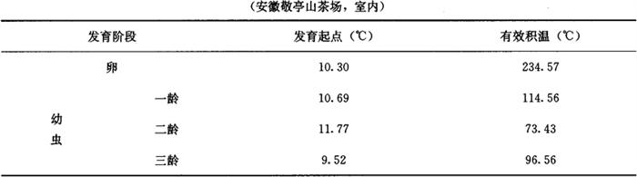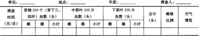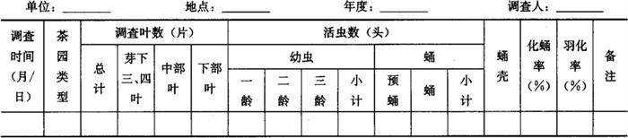 释义 | 茶黑刺粉虱测报调查方法 黑刺粉虱[Aleurocantus spiniferus(Quainlance)]又名橘刺粉虱,是我国茶区发生范围较广的一种茶树主要害虫。主要分布于江苏、浙江、安徽、湖南、湖北、江西、福建、广东、海南、广西、四川、贵州、云南、台湾等主要产茶省(自治区)。除为害茶树外,并能加害油茶、山茶、梨、柿、白杨、樟、榆、柞等多种林木。黑刺粉虱幼虫吸取茶树汁液,并排泄蜜露,招致病菌寄生,诱发煤病,严重时茶树一片漆黑。不仅影响茶叶产量和品质,而且严重影响茶树树势。 1 调查内容和方法 1.1 幼虫和蛹发育进度调查 选择不同类型有代表性茶园(高坡、低洼、平地)各1块,从3月底至4月初开始调查。每隔3天查1次,隔行或5点取样,每点各随机摘取芽下三、四叶及中、下部叶片100张,共计500张;再均匀摊开,按对角线取出100张,用针刺法检查幼虫(体液清的)、预蛹(体液糊状)、蛹(体液红色)、幼虫死亡、蛹寄生等情况。调查至成虫羽化高峰后结束。数据分别记入表8-67。 表8-67 黑刺粉虱__代发育进度调查记载表 1.2 成虫消长调查 选择有代表性茶园,固定为系统调查地块。利用成虫喜群集在芽梢嫩叶,芽下三、四叶和中、下部老叶背面习性,从初见成虫日开始观察。每天上午7、8时(迟了成虫即隐蔽到茶丛中间),轻翻芽下三、四叶及中下部老叶各100片的成虫数量,并分清雌雄(雌大雄小),分别记入表8-68。 表8-68 黑刺粉虱__代成虫消长调查记载表 根据成虫消长情况,可预测成虫高峰日和孵化高峰日。 1.3 茶园虫卵量调查 此项调查在于掌握黑刺粉虱产卵量和查清产卵部位。选择封养和开采茶园,固定为系统调查地块。从初见成虫开始至孵化结束为止,每3天查1次。随机或隔行5点取样,每样点检查芽下三、四叶50片和中、下部叶各50片的卵和幼虫数,记入表8-69。 表8-69 黑刺粉虱__代虫卵量调查记载表 1.4 茶园虫口消长调查 选择不同类型有代表性茶园各1块,作为系统调查地块。从3月底至12月中旬,每隔5天查1次。随机5点取样,每点取芽下三、四叶和中、下部叶三层各50片,用针刺法检查各虫态数量,并记入表8-70。 表8-70 黑刺粉虱__代茶园虫口消长调查记载表 1.5 天敌调查 了解天敌种群数量及其对黑刺粉虱控制作用,为分析发生程度提供依据。在系统调查茶园中选主要类型田1块,结合各次虫情调查,同时检查主要天敌种类和数量。捕食性天敌中主要有红点唇瓢虫;寄生性天敌主要有斯氏寡节小蜂、粉虱黑蜂、长角广腹细蜂等;寄生菌主要有韦伯虫座孢菌等。并记入表8-71。 表8-71 黑刺粉虱天敌调查记载表 2 预测预报方法 2.1 镜检法 在卵孵化期,定期从田间采集茶树中、下部成老叶,在双筒镜下逐一检查活卵数和初孵幼虫数(如果查卵壳数易将上年或上代留下的卵壳统计在内,易产生孵化率偏高而影响数据准确性),计算卵的孵化率公式如下: 卵孵化率=幼虫数÷(活卵数+幼虫数)×100% 当卵孵化率达到84%左右时,田间即可喷药防治。如果虫口密度大,需要防治2次的,第一次可在卵孵化率达60%左右时开始防治,6~7天后再喷第二次。 2.2 历期预测法 蛹羽化期,定期从田间采集有蛹叶,室内检查新鲜的蛹壳数和活蛹数(体背无倒T字形裂口,或用大头针压破蛹体有液体者记作活蛹),掌握蛹羽化的高峰期和羽化盛末期,或者在成虫发生期,田间定点、定期在早晨露水未干前调查芽梢上的成虫数,统计百梢成虫量,成虫数量最多的这段时间即为成虫的高峰期。然后按下式计算防治适期: 防治适期=蛹羽化高峰期(成虫高峰期)+成虫产卵前期(1~2天)+卵历期+一龄幼虫期 防治适期=蛹羽化盛末期+成虫产卵前期+卵历期 2.3 相关预测法 浙江杭州影响上年越冬代成虫高峰的关键因子是3月份的平均气温,成虫高峰随当地3月份平均气温的升高而提前,其预测式为: y=68.6538-5.2575x 式中: x——3月份的平均气温; y——成虫高峰日,即表示4月某日。 应用时当求得上年越冬代成虫高峰日后,田间喷药再推后6~7天。 影响第一代卵孵化盛末期的关键因子是早春气温,以当地3月1日至4月10日的平均气温为x,y=1,示5月1日,……,则预测方程为: y=55.4692-3.3916x 3 防治指标 小叶种2~3头/叶,大叶种4~7头/叶。 4 测报参考资料 百叶箱饲养黑刺粉虱历期 注:安徽敬亭山茶场,1980年 黑刺粉虱的发育起点和有效积温 |