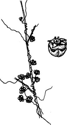 释义 | 菟丝子 图2-27 菟丝子 〔学名与别名〕 Cuscuta chinensis Lam. 中国菟丝子、金丝藤、豆寄生。 〔形态特征〕 一年生寄生性草本。茎缠绕,细丝状,多分枝,黄色或浅黄色,长达2米以上。无叶。花多数,簇生,有时2朵并生,花梗较粗壮;苞片2枚,另有小苞片;花萼杯状,5裂,裂片卵圆形或长圆形;花冠白色,壶状或钟状,顶端5裂,向外翻曲,果熟时将果全部包住;雄蕊与花冠裂片互生;鳞片5裂。蒴果近球形,稍扁,盖裂;种子椭圆形,淡黄褐色或褐色,表面较粗糙,无子叶和胚根。 幼苗丝状,淡黄色。 〔生物学特性〕 种子繁殖。种子发芽的最低温度为15℃,最适24~28℃;适宜土层深度为0~3厘米。土壤深层未发芽的种子可存活1~2年。 幼苗初期以其丝状体向四周旋转,寻找寄生物,缠上寄主后即在接触部位产生吸盘,吸住寄主营寄生生活,如7~10天找不到寄主即渐夭亡。 在我国北部地区,菟丝子通常于5~6月出苗。 〔分布与危害〕 分布在吉林、辽宁、河北、山东、江苏、河南、山西、陕西、四川、贵州、广东等地。主要寄生于豆科、藜科、菊科作物和杂草上。对豆类危害较重;对花生、芷蓿及马铃薯等也有危害。 |