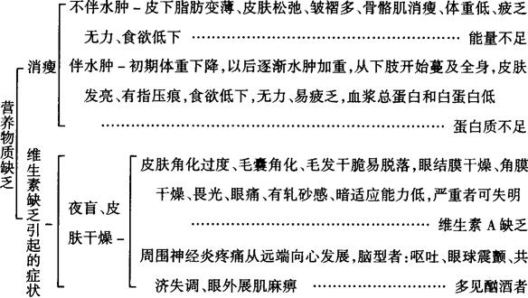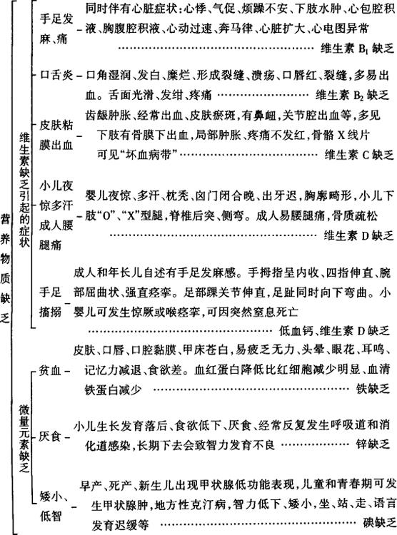 释义 | 营养物质缺乏 【病因及诊断思路】 人体必需的营养素除水外,还需要蛋白质、脂肪、碳水化合物、维生素和矿物质。以上六大营养素缺一不可,缺少哪种营养素都可导致机体的生理功能降低,出现一系列的症状和体征。营养物质缺乏的诊断思路如下: 【治疗原则】 1.对症治疗。根据病因不同补足所缺的营养物质,注意患者常同时有多种营养物质的缺乏。 2.提倡母乳喂养,纠正幼儿偏食的毛病,注意饮食的多元化及营养物质的合理搭配。 |