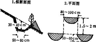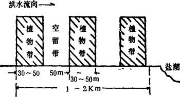 释义 | 营造水土保持林 1.在盐湖周围坡地上,沿等高线进行带状水平沟式整地,在沟埂内侧地面的斜坡上栽树,用以积存雨水和截留雨水中冲蚀的泥土,并为树木幼苗灌溉施肥(如图4-2-6)。 图4-2-6 水平沟纵断面图 水平沟分段挖,段与段之间有一定距离,上下两水平带上,沟的布局呈品字形排列(图4-2-7)。上下两条水平沟的间距,视降雨量而定,降雨量大,间距小些,降雨量小,间距可大些。 图4-2-7 水平沟平面位置图 造林时,在洪水危害较严重的地段,株距宜较小,树种以灌木为主;水土条件较好的,可乔灌混栽。 2.水土流失不严重的地段,可用挖鱼鳞坑的方法截水造林,防止水流冲刷地表和淤泥危害盐湖。方法与水平沟类似,只是水平沟为长条状,鱼鳞坑则为半圆形的小块状。造林时,在坑的下缘栽植,树种可视当地条件,选择乡土灌木或乔、灌混栽(如图4-2-8)。 图4-2-8 鱼鳞坑示意图 3.营造防洪滤澄植物带。一般防洪带宽约1~2km,其中设置若干条植物滤澄带,每条宽约30~50m,带与带间距50m(如图4-2-9) 图4-2-9 防洪滤澄植物带示意图 树种选择及配置,仍以灌木为主,乔灌结合;灌木株距1~2m,行距2~3m,灌木行内每隔4~6m栽一株乔木,隔行种植,使每一植物带内都是乔灌混栽,既不减弱防洪滤澄效果,又可美化环境,增加木材收益。植物带间空地也要封育,使其自然恢复现有植被;如欲见效快,可用人工播种优良牧草。为了防止已滤清的清水短时间内全部注入盐湖,影响采盐,可建造贮水库,存水备用。 |