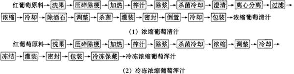 释义 | 葡萄汁 (一)葡萄的营养成分与加工特性 葡萄是世界上产量最高的水果,在欧美大约有80%的葡萄用来酿制葡萄酒和加工葡萄汁。适合葡萄汁加工的葡萄品种有:康拜尔(Cambell earlg)、康科特(Conoord)、玫瑰香(Muscat)、法多娜(Fredonia)、台拉华(Delaware)、尼亚加拉(Niagara)等,主要成分见表2-1-59。 表2-1-59 葡萄主要成分 葡萄中的糖有葡萄糖、果糖、少量蔗糖和木糖。酸有酒石酸、柠檬酸、苹果酸、抗坏血酸等。葡萄中的钙和铁含量也高,此外还含有一定量的胡萝卜素、硫胺素等。葡萄味浓酸甜,具有良好的色、香、味,但葡萄梗含有单宁,会使果汁发苦发涩,必要时应采取适当处理以去除过量的单宁和刺鼻的味道。 生产葡萄汁用的原料应选择色、香、味俱佳的葡萄品种。未成熟的葡萄的风味差、低糖、高酸,且单宁含量高,不适合加工果汁。一般在午前葡萄果温还未上升以前,将完整葡萄摘下,最好当日加工。必要时放入冷库内贮藏,按原料新鲜度和成熟度分开贮藏,库温(0±1)℃,相对湿度80%~85%,但应在10d内加工完毕。可以将不同品种的葡萄混合加工,以能调节生产计划。 葡萄汁生产的关键问题是不应损害葡萄的香气、风味、色泽和原料本身的特性。葡萄汁除天然色素在贮藏过程中退色和酒石结晶析出外,还有果胶、单宁的残留问题。 (二)葡萄汁与浓缩葡萄汁生产技术 葡萄可以加工成葡萄汁和浓缩葡萄汁。与苹果汁一样,根据果汁内是否含有果胶,葡萄汁可分为葡萄清汁和葡萄浑汁两种,因此浓缩葡萄汁也可分为浓缩葡萄清汁和浓缩葡萄浑汁,生产工艺流程如图2-1-39所示。 图2-1-39 浓缩葡萄汁生产工艺流程图 (三)浓缩葡萄清汁生产要点 1.原料 应按品种分开,要充分注意原料的新鲜度、成熟度和糖度。特别是由于未成熟果的糖度低、酸度高、单宁含量高、风味差,而且由于可溶性碳水化合物的存在,在果胶酶处理后果汁呈不透明状,因此不能使用未成熟的葡萄来榨汁。另一方面,因下雨而形成的裂果,由于容易生霉和发酵变质,也不适合用来加工果汁。加工葡萄汁的葡萄原料包括红葡萄和白葡萄两个品种。 2.洗净 为了洗去附着在原料果实表面和梗部的农药、灰尘等,在水中浸泡后,再于0.03%的高锰酸钾溶液中浸泡消毒2~3min,也可喷淋1%左右的蔗糖脂肪酸酯系洗涤液(添加0.05%HCl并加热至35~40℃),然后用水冲洗,最后再用高压水冲洗干净。 3.压碎和除梗 葡萄洗净后,由破碎除梗机破碎除梗,将葡萄串放在回转的合成橡胶辊上压碎,两辊的间隙可调。压裂葡萄进入除梗机,由安装在回转轴上的桨叶将果梗排出,通过滤网分离出碎葡萄,由泵送去软化。如有果梗混入,在加热操作时,会溶解出大量单宁,使色泽发黑,必须加以注意。 4.加热 为了使红葡萄色素溶出,一般采取热榨方法。加热是决定红葡萄汁质量优劣的重要工艺,加热不得损害原料葡萄的色、香、味等特性。加热条件要根据加热装置和榨汁机的结构、原料品种和成熟度、产品用途等慎重确定。加热可以提高出汁率,但必须避免过度的加热,否则会促进种子和皮中单宁的溶出。色素浸出的温度较单宁低,而且葡萄中的多酚氧化酶的活力不及苹果,因此加热温度不必高,应以获得色泽良好的果汁为宜。加热条件为65~75℃,保温时间也应严格控制。 5.榨汁 葡萄可以采用热榨,也可进行冷榨。热榨时,加热软化的葡萄直接进行榨汁。也可以进行预排汁,通过粗滤,取出自流汁,滤渣再行榨汁。白葡萄一般采用冷榨汁,榨汁后尽快杀菌、冷却。出汁率一般70%左右,其中自流汁30%~40%。在美国,加热冷却后的脱粒葡萄加酶榨汁。葡萄榨汁的酸度与单宁含量均比其自流汁高。压榨的压力高,出汁多,浆量也多,为了获得较好的葡萄汁,出汁率一般以65%左右为宜。 6.除浆 榨好的葡萄汁中混有果浆(果肉粗纤维及细肉屑),先进行酶处理,然后离心分离除去果浆。温度愈高果浆分离效果愈好。因此,在不影响果汁质量的前提下,可在保持榨汁温度一定的条件下进行离心分离。对于浑汁,除浆时仅要求除去大的果浆粒子,以保持一定的浑浊度。 7.澄清(酶处理) 葡萄清汁生产需要进行酶处理,不同的葡萄品种,酶制剂的作用不尽相同,因此在生产中更换葡萄品种时也应注意酶反应的效果。通常果胶酶有两种作用,一是果胶酯酶切断果胶甲酯键,另一是聚半乳糖醛酶切断果胶分子的半乳糖醛酸键,从而分解果胶。由于葡萄的pH为3.3~3.8,酶制剂反应的最佳pH为3.5~4.0,两者基本一致,最佳温度为40~45℃。果胶酶耐热性差,可以先溶解于杀菌过的低温果汁中,然后加到杀菌并冷却(45℃)的果汁中,搅拌混合。锡、铁、铝、钙等金属离子是酶制剂的有害物质,在生产过程中,要防止这些金属离子的混入。另外还应根据原料的种类和成熟度,选定酶制剂及其用量。一般果胶酶添加量为0.01%~0.05%,其他酶制剂为0.005%~0.025%。处理条件,在40~45℃以下,作用4~10h。酶处理罐可以自动控制温度和搅拌,在使用前应对酶处理罐进行杀菌。澄清可以使用膨润土和硅胶等澄清剂,膨润土用量为果汁的0.05%~0.1%,硅胶0.05%,膨润土还可减少葡萄汁的氧化作用。 8.葡萄芳香的回收 最好的芳香液是在色素溶出的加热工序进行回收的。但一般工厂是在榨汁离心分离后,采取杀菌、冷却兼芳香成分回收的方式。有的从浓缩时的二次蒸汽中进行回收。葡萄的芳香成分在加热时容易挥发,杀菌时要定量供给果汁,瞬间加热