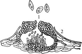 释义 | 葡萄白腐病 葡萄白腐病又称腐烂病、水烂、穗烂,是葡萄的重要病害之一,在我国主要分布在东北、华北、西北和华东北部等地区。我国北方产区一般年份果实损失率在15%~20%,病害流行年份果实损失率可达60%以上。 【症状】: 白腐病主要为害果穗,也为害新梢和叶片。一般先从接近地面的果穗尖端开始发病,在小果梗或穗轴上产生浅褐色、水渍状、不规则病斑,逐渐蔓延到整个果粒,病组织有土腥味。果粒发病,先在基部变淡褐色软腐,迅速致整个果粒变褐腐烂。病穗轴及果粒表面密布灰白色小粒点(分生孢子器),粒点上溢出灰白色黏液(分生孢子),发病部位出现灰白色腐烂,因而得名白腐病。果柄及穗轴干枯皱缩,发病部位以上萎蔫、干枯;严重发病时,全穗腐烂,受震动时病果以及病穗极易脱落,重病园地面落满一层,这也是白腐病发生的重要特点。不脱落的果粒,常失水干缩成有棱角的僵果,悬挂树上,长久不落。白腐病的症状与蔓枯病很相似,但蔓枯病果粒不易脱落,病果上的小粒点为黑色,溢出的黏液灰黑色。 新梢发病,往往出现在受损伤部位,如摘心部位或机械伤口处。从植株基部发出的徒长枝,因组织幼嫩,很易造成伤口,发病率高。病斑开始呈水渍状,淡褐色,不规则,并具有深褐色边缘的腐烂斑。病斑纵横扩展,以纵向扩展较快,逐渐发展成暗褐色、凹陷、不规则形的大斑,表面密生灰白色小粒点。病斑环绕枝蔓一周时,其上部枝、叶由黄变褐,逐渐枯死。发病后期,寄主表皮脱落,肉质部分腐烂解离,病皮呈丝状纵裂与木质部分离,如乱麻状。发病严重时,可使枝梢枯死或折断。 叶片发病,多从叶尖、叶缘开始,开始呈水渍状、淡褐色、近圆形或不规则斑点,逐渐扩大成具有环纹的大斑;后期病斑上着生灰白色小粒点,但以叶背和叶脉两边多;病斑发展末期常常干枯破裂。 【病原】: Coniothyrium diplodiella(Speg.)Sacc.,属于半知菌亚门真菌;有性阶段为 Charrinia diplodiella(Speq) Viala et Ravaz.,属于子囊菌亚门真菌,在我国未发现。发病部位长出的灰白色小粒点,即病菌的分生孢子器。分生孢子器球形或扁球形,壁较厚,灰褐色至暗褐色,大小为118~164微米×91~146微米。分生孢子器底部壳壁凸起呈丘形,其上着生不分枝、无分隔的分生孢子梗,长12~22微米。分生孢子梗顶端着生单细胞、卵圆形至梨形、一端稍尖的分生孢子,大小为8.9~13.2微米×6.0~6.8微米。分生孢子开始无色,随成熟度的增长而逐渐变为淡褐色,内含1~2个油球。有的病菌还能产生一种小型分生孢子器,产生小型的分生孢子,大小为4~6微米×1.5微米,无色,短棒状,中部膨大(图4-1)。还有一种孢子,不生在孢子器中,而直接产生在无色、分枝、很长的分生孢子梗上(长180~200微米),形态(6~8微米×3~4微米)与分生孢子器内的分生孢子相似。 图4-1 葡萄白腐病菌 1.分生孢子 2.分生孢子器 【发病规律】: 病菌主要以分生孢子器或分生孢子随病残体在土表和土壤表层越冬;残体腐烂分解后,病菌可在土壤中腐生1~2年。病菌在土壤中的分布,以表土5厘米深的范围内最多,越深病菌数量越少,但30厘米处仍有病菌存在。此外,病菌也能以分生孢子器在树上病果和病梢上越冬。越冬的病菌组织于第二年春季,环境条件适宜时,产生分生孢子器和分生孢子。分生孢子靠雨水飞溅而传播,通过伤口侵入,引起初次侵染;以后又在病斑上产生分生孢子器及分生孢子,分生孢子散发后引起再次侵染。 发病时期因各地气候条件不同而有早晚。华东地区一般于6月上中旬开始发病;华北在6月中下旬;东北则在7月份。发病盛期一般都在采收前的雨季,约7~8月。 高温高湿是病害发生和流行的主要因素。分生孢子萌发的温度范围为13~40℃,最适温度为28~30℃。孢子萌发要求95%以上的相对湿度,但在蒸馏水中和相对湿度低于92%以下不能萌发,在葡萄汁液中萌发率高达93.2%,在放有穗梗的蒸馏水中萌发率最高。多雨年份、高湿通风透光不良的果园发病重,雨季来临早发病早,特别在发病季节遇暴风雨或雹害,果梗、果穗受伤,常能导致病害的流行。病害的发生与寄主的生育期关系密切,果实进入着色期和成熟期,其感病程度也逐渐增加。果穗离地面的高度与发病关系密切,一般近地面的果穗先发病。此外,土质黏重,排水不良,地下水位高或地势低洼,杂草丛生的果园发病重。在架式方面,立架式比棚架式病重,双立架比单立架发病重,东西架向又比南北架向发病重。 品种抗病性存在差异,黑虎香、紫玫瑰香、柳子较抗病;紫玫瑰香、保尔加尔等轻度感病;季米亚特等发病稍重;红玫瑰香、黄玫瑰香、上等玫瑰香、龙眼、吉姆沙等易感病;巨峰、佳利酿、马福尔多、黑赛白利高度感病。 【防治方法】: (1)彻底清除病原 生长季节及时摘除病果、病叶,剪除病蔓,拣除落地病果;埋土防寒前结合修剪,彻底剪除病穗病蔓,扫除病果病叶,集中烧毁或带出园外集中烧毁。发病前用地膜覆盖地面可以防止地面病菌侵染果穗。 (2)加强栽培管理 多施有机肥,增强树势。通过修剪绑蔓提高结果部位。及时摘心、剪副梢,使枝叶间通风透光良好,不利病菌蔓延。注意排水,降低湿度,抑制病害。 (3)药剂防治 重病园,可在病害始发期前,地面撒药灭菌,常用药剂为福美双∶硫磺粉:碳酸钙=1∶1∶2,三者混合均匀后,撒施在葡萄园土面,每公顷撒15~30千克。一般要在病害始发期前5~6天开始喷第一次药,以后每隔10~15天喷1次,共喷