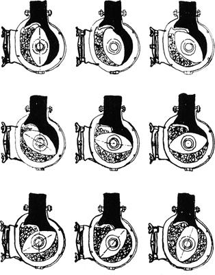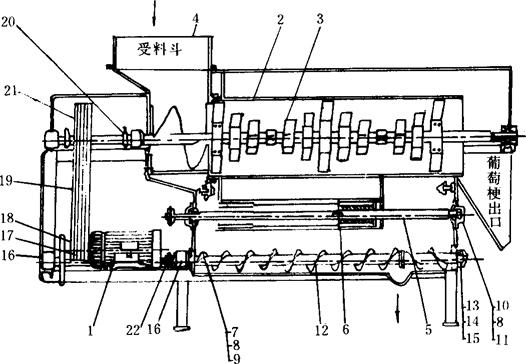一、葡萄的输送设备 葡萄的输送有采用筐装、翻斗车、螺旋输送机和带式输送机等几种。 (一)筐装 筐装一般采用木头或竹条制成,另外还有塑料筐。容量为20kg左右。 (二)螺旋输送机 1.性能 主要用于输送各种粉状、粒状和不太坚硬的小块状物料,不宜输送粘性大的、易结块的大块物料。 2.结构 见图3-1-5。 图3-1-5 螺旋输送机结构示意图 1-减速传动装置 2-出料口 3-螺旋输送器 4-中间吊挂轴 5-机壳 6-进料口 3.设备的优缺点 优点: (1)结构简单,设备体积紧凑,占地面积小,可以吊装在空中使用。 (2)加工制造与维修都很方便,只要加强传动装置与轴承的维修,就可正常生产。 (3)用于输送固体物质,容易密封,不仅可以用于水平式输送,也可用于水平成倾斜20°角以内的输送,并可以在中间装卸料。 (4)操作安全,允许操作环境温差范围大,温度为-20~50℃。 缺点: (1)喂料如不均匀,易造成堵塞。 (2)输送距离不能过长,一般不超过30~40m。 (3)输送过程中物料易破碎。 (4)输送阻力大,动力消耗大。 (5)若输送质地较坚硬的小块物料,设备本身磨损大,影响使用寿命,因为制作这种设备的钢板是不太厚的,螺旋片一般厚4~8mm。 (三)带式运送机 1.性能 带式输送机即用皮带进行输送物料,适应于输送细散的物料,也可输送块状物与成件、成箱的物品,适应范围比螺旋输送机较为广泛。 2.结构 带式输送机可根据需要分以下几种,如图3-1-6。 图3-1-6 皮带输送机基本形式图 H——皮带输送机输送高度 Ln——皮带输送机投影长度 水平输送机安装形式如图3-1-7所示。 图3-1-7 皮带输送机一般安装形式 3.设备优缺点 优点: (1)与螺旋输送机相比,结构稍复杂。 (2)输送能力大,最高可达20000m3/h。 (3)可以输送粉状物、块状物、成件包装物,对物料适应性强,应用范围广。 (4)输送物料平稳,运输阻力小,耗能低。 (5)输送物料破损小,损耗低。 (6)输送距离可达300~400m。 (7)可以在输送带任何部位装卸,操作方便。 (8)维修保养简便。 缺点: (1)造价较高,若短距离输送或输送量小,采用带式输送机在经济上不合算。 (2)输送时倾斜度不能超过17~18°,水平输送较适宜。 4.输送带的规格 (1)橡胶输送带 以棉织物或化纤织物挂胶后的胶布层为带芯,以橡胶为上下覆盖层。 表3-1-13 橡胶输送带主要品种和带宽 普通橡胶输送带的层数为3~12层,可根据强度计算使用。 (2)塑料输送带 以维尼纶棉混纺织物为带芯,用聚氯乙烯塑料作为覆盖层。 表3-1-14 常用塑料输送带的规格 二、葡萄的破碎与除梗 (一)破碎的技术要求 (1)每粒葡萄都要破碎。 (2)籽实不能压破,果梗不能压碎。 (3)破碎过程中,葡萄及汁不得与铁、铜等金属接触。 (二)葡萄破碎机的种类及性能 在我国的河南新乡、山东烟台等厂家近几年来生产出几种葡萄破碎机,表3-1-15为新乡轻工机械厂生产的系列产品及有关技术参数。表3-1-16为烟台轻工机械厂生产的JYG20葡萄除梗破碎机的性能表。 表3-1-15 葡萄破碎机的性能表 表3-1-16 烟台轻工机械厂生产的JYG20葡萄除梗破碎机性能表 (三)国际上几种常见的除梗破碎机 1.卧式除梗破碎机 如图3-1-8所示,这种除梗破碎机是先除梗后破碎。 图3-1-8 葡萄除梗破碎机结构图 1-电动机 2-筛筒 3-除梗器 4-输送螺旋 5-破碎辊轴 6-破碎辊 7、8、9、10、11-轴承 12-旋片 13、14、15-轴承 16-减速器 17、18、19、21-皮带传动 20-输送轴 22-.联轴器 葡萄穗从受料斗落入,整穗葡萄由螺旋输送器输入除梗装置内,由除梗器打落或打碎的葡萄粒,从筛筒上孔眼落入破碎滚中,葡萄梗从机尾部排出,排出的葡萄梗用鼓风机吹送至堆场,葡萄破碎后,用泵经出汁口输出。 目前,这种设备能力有20~35t/h几种。 2.立式除梗破碎机 在欧洲有这种设备,机身为立式圆筒形,装有固定圆筛板和除梗器推进。葡萄浆则由筛孔流出,未击碎的葡萄粒则落入下部的破碎辊中进行破碎,葡萄汁从上部排出。 立式除梗破碎机基本性能如下: 生产能力:10~12t/h,功率5.5kW 40~45t/h,功率10kW 立式除梗破碎机结构如图3-1-9。 图3-1-9 立式除梗破碎机 1-螺旋输送机 2-机体 3-除梗器 4-传动装置 5-筛筒 6-破碎装置 三、葡萄浆和汁、酒所用的泵 葡萄酒酿造工业中用泵来输送葡萄浆、葡萄汁或酒和其他半成品。最常用的泵有转子泵和离心泵两种。 (一)转子泵 常见的为椭圆芯转子泵。 1.用途 用于输送颗粒葡萄、葡萄浆或发酵后的残渣。其作用原理如图3-1-10所示。 图3-1-10 椭圆芯转子泵输送葡萄粒过程图 2.技术特性 能力:12~60t/h(整粒葡萄) 10~20t/h(发酵后残渣) 转速:60r/min 3.优点 (1)在供料充足的情况下,输送量及输送比例均衡,没有跑空车的现象。 (2)应用调速电机,可根据需要调整输送量。 (3)结构简单,操作方便,不会压碎葡萄籽,且价格便宜。 湖南湘潭轻工机械厂生产的ZZ30-20/3型椭圆芯转子泵,其技术特性如表3-1-17所示,结构如图3-1-11所示。 表3-1-17 ZZ30~20/3型椭圆芯转子泵技术特性 图3-1-11 ZZ30-20/3型椭圆芯转子泵结构图 1-电动机 2-BL2联轴器 3-螺旋轴进料器 4-螺旋壳体 5-泵 6-手孔 7-底座 (二)离心泵 1.用途 广泛用于生产中输送葡萄酒、水及其他液体。 2.结构及工作原理 图3-1-12为离心泵示意图。离心泵的工作部分是安在轴1上的工作轮2。它由两个圆盘3和4及它们之间的叶片7组成。当工作轮很快转动时,泵体内形成真空,液体就经过吸入管6和侧孔5进入工作轮,液体由工作轮被抛向泵身9,并从那里压往扬水管8。 图3-1-12 离心泵示