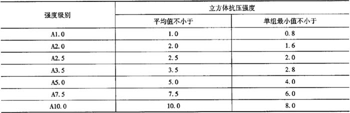 表3-127 蒸压加气混凝土砌块的立方体抗压强度MPa