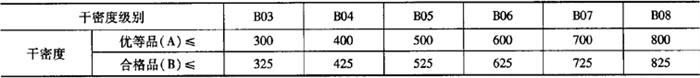 2)干密度级别有:B03、B04、B05、B06、B07、B08六个级别。