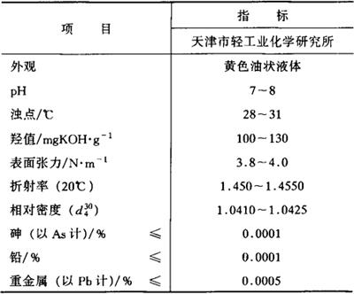 释义 | 蔗糖聚氧丙烯醚 别名 蔗糖醚、糖助剂-10 编码 GB 00.005 化学结构 主要成分为高分子聚醚型非离子表面活性剂。 性状 黄色油状液体,溶于冷水,pH为7~8,浊点28~31℃,羟价100~130mgKOH/g,表面张力3.8~4.0×10-4N/cm,相对密度(d 制法 以蔗糖和环氧丙烷为原料,在高压釜内聚合而成的高分子聚醚型非离子型表面活性剂,即为糖助剂。 糖助剂-10号为90份糖助剂加10份50%磺化琥珀酸二辛酯钠盐,再加5%水配制而成。 质量标准 毒理学依据 1.LD50 大鼠口服3.16g/kg(bw)。 小鼠口服5.84g/kg(bw)。 2.蓄积毒性 蓄积系数K值为5.3,属弱毒性物质。 3.致突变试验 Ames试验、小鼠精子畸形试验、骨髓微核试验,均无致突变性。 使用 在制糖工业中作糖助剂。 1.使用注意事项 本品提高甘制糖煮糖效率,缩短煮糖时间,提高生产效率。具体在糖厂煮丙糖膏(末段糖膏)中加入100mg/kg的糖助剂,以增加罐内糖膏流动度,降低糖膏和糖分子晶体之间界面能量,较容易与糖晶体结合,加快结晶、缩短煮糖时间,提高出糖率。 2.使用范围及使用量 我国《食品添加剂使用卫生标准》(GB 2760-86)规定:用于制糖工业,最大使用量0.1g/kg。 |