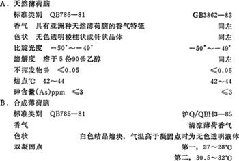 薄荷脑有天然薄荷脑和合成薄荷脑两种。天然薄荷脑是由薄荷油冷冻结晶分离精制而得,旋光度是左旋的;合成薄荷脑是由柠檬桉油作原料。其主要成分香茅醛闭环得异胡薄荷醇,再加氢而得,或由m-甲酚合成百里香酚,再催化氢化得到四种薄荷脑异构体混合物,经精密减压分馏,可得到精制的合成薄荷脑,是无旋光性的消旋体。