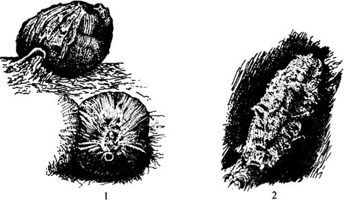 释义 | 藤壶蚧 【学名】 Cerococcus muratae kuwana。 【别名】 日本壶蚧。 【分布与为害】 分布江苏、上海、浙江、四川、贵州等地。寄主广玉兰、茶、柑橘、梨、香樟、珊瑚、枇杷等。若虫、雌成虫刺吸枝干汁液,使树势衰弱。 【形态特征】 雌成虫体球形,直径2~5毫米。体背突起,腹面平。触角退化呈锥状,生有数根毛。口器大,喙2节。无足。气门大,气门路发达;后气门路分叉,由5~6格腺组成。尾瓣大而硬化。肛环大,有孔及环毛6根。肛管发达;肛板发达硬化。对腺和管腺集成宽缘带,在腹部背面,腹面按节排成横带。头胸部和大部腹背,仅见稀疏散乱管腺,头、胸部腹面仅见暗框对腺散乱分布。多格腺大小一样。 雌成虫蜡壳长5~6毫米,宽4~5毫米,高3毫米,红褐色而带有放射状白线6根。壳顶有带红的褐色蜕皮壳(图9-86)。第一龄若虫长卵形,长0.5毫米,分节明显,腹末有带长刚毛的大尾瓣2个。肛环在2尾瓣之间,有长环毛约6根。口器大,喙2节,口针长。触角6节,第三节最长,第六节宽大于长。足发达,胫节长,几为跗节的2倍;爪大而弯曲。体背对腺集成近纵列。 图9-86 藤壶蚧 1.雌介壳 2.雄介壳 【生活习性】 1年1代。4月成虫产卵,5月初开始孵化,5月中旬若虫盛孵。10月下旬至11月若虫越冬。 【防治方法】 早春整枝修剪时,剪除虫枝。若虫盛孵期(5月上旬)喷40%氧化乐果1000倍液,或50%杀螟松1000倍液。隔1周喷1次,共喷1~2次。 |