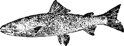 虹鳟体纺锤形,略侧扁,背鳍后有一脂鳍,腹鳍的前后均有鳞(图2-11)。侧线鳞115-161,整尾,背部深灰色,下腹部银白色,头和体背及体侧都有分散的小黑斑点,沿身体侧线有一条宽的鲜艳似彩虹的色带,故名虹鳟。