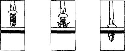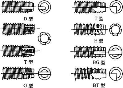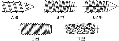释义 | 螺钉连接形式 普通螺钉形式包括:机器螺钉、止动螺钉、自攻螺钉、自锁螺钉(用尼龙扣或片压入相配的螺纹中防止松动),预装配螺钉(带有锁紧垫圈,它能旋转,但不能脱开),特殊钉头螺钉。 自攻螺钉有两种类型,即成形螺纹螺钉和切削螺纹螺钉。图7-15为成形螺纹螺钉,它使螺钉附近的材料位移和变形从而产生紧密的连接。在螺钉挤成螺纹的同时,金属与金属间就形成最大的接触。图中A型用于薄板零件。B型用于薄板与厚板金属零件。BP型同B型,但常可用于偏心的孔。C型螺纹与标准细牙机器螺钉相同,用于较薄材料。U型用于永久型连接,不推荐用于拆卸处。图7-16为切削螺纹螺钉。在每一螺钉中,前端的螺纹切削刃用于装配时切削相配的螺纹。一般来说,这些螺钉适合用于铝、锌、铅的压铸件、胶合板、石棉及其他合成材料。 图7-15 成形螺纹攻丝螺钉 图7-16 切削螺纹攻丝螺钉 拧入自攻螺钉的位置应便于提供良好的攻螺纹动作和紧固力。理想的拧紧转矩为拆卸转矩的2/3和3/4之间。自攻螺钉几乎适应于一切材料,包括钢、铸铁、铝、锌、黄铜、塑料、玻璃纤维制品、石棉以及树脂浸渍的胶合板。图7-17为自攻螺钉连接过程,淬硬的螺钉尾部有碾压出的钻尖,能保证得到正确尺寸的定位孔,从而省去一道工序。 图7-17 自钻孔攻丝螺钉 |