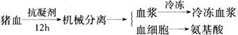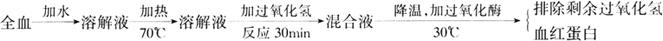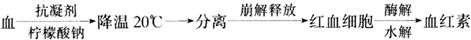 红血细胞→NaOH处理→HCl中和→过氧化氢脱色→红血细胞处理→水洗→脱水→血红蛋白