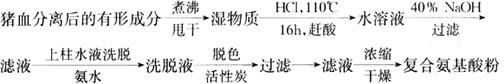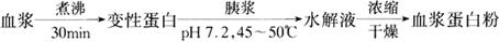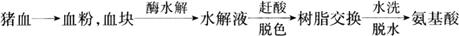 猪血→血纤维→酶(H+)水解→水解液→树脂交换→精制→配料→水解蛋白