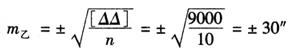 上式又称贝塞尔公式。式中v为观测值的似真误差,即各观测值li与算术平均值x之差: v1=l1-x,v2=l2-x,…,vn=ln-x [vv]为似真误差的平方和,即