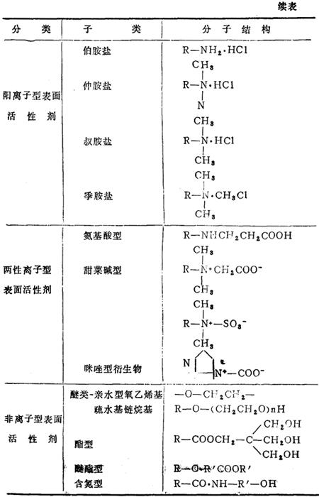 释义 | 表面活性剂 表面活性剂是一种有机化合物,其分子结构具有两种不同性质的基团:一种是不溶于水的长碳链烷基,称为亲油基或疏水基、憎水基;另一种是可以溶于水的基,称为亲水基。正因为表面活性剂是由亲水基和亲油基组成的,所以具有能吸附在水油界面上的特性。 1.表面活性剂作用 (1)润湿、渗透作用。当某种固体需要润湿或渗透一部分水分时,在水中添加少量表面活性剂,润湿和渗透就容易得多。 (2)乳化、扩散和增溶作用。表面活性剂能使非水溶性物质在水中成均匀乳化或分散状态。 (3)发泡、消泡作用。在溶液中加入表面活性剂以后,可以使气液相表面形成由液体膜包围的泡孔结构,使表面张力下降的现象称为发泡作用。或防止泡沫形成或使原有泡沫消失称消泡作用。 (4)洗涤作用。这是上述三种作用的综合结果。 2.表面活性剂的化学结构与性能关系 表面活性剂的化学结构和性能间的从属关系大体如图16-13所示。 图16-13 表面活性剂结构和性能关系图 亲水亲油平衡值(HLB),即表面活性剂亲水基与亲油基的比值,是选择和评价表面活性剂使用性质的重要指标。如阴离子表面活性剂烷基磺酸钠R·SO3Na,亲水基为SO3Na,疏水基为直链烷基R,当R的碳原子数小于12是润滑剂,R碳原子数为14~18时为优良洗涤剂,大于20时是乳化剂。如图16-14所示。 图16-14 表面活性剂的HLB值与用途形态关系 (W/O为油包水形乳化,即油为连续相、水为分散相,反之为O/W型乳化剂) 3.表面活性剂分类(表16-78) 表16-78 表面活性剂分类 表面活性剂分类方法是按其在水溶液中能否离解或离子所带电荷的性质分类的。 4.氟代烃类表面活性剂 表面活性剂种类品种繁多,这里仅仅介绍近年来国际性开发的新型表面活性剂,即氟代烃类表面活性剂,其特性、制法和用途见表16-79。 表16-79 氟代烃类表面活性剂 |