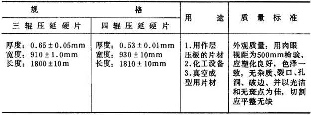 表6-3-4 硬聚氯乙烯片材的规格、用途及质量标准